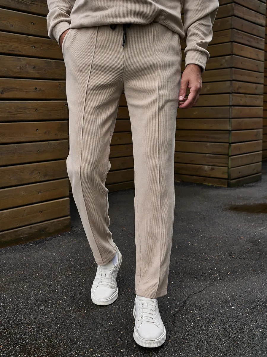 Чоловічі Вільні Бежеві Штани Брюки в Рубчик зі Стрілками