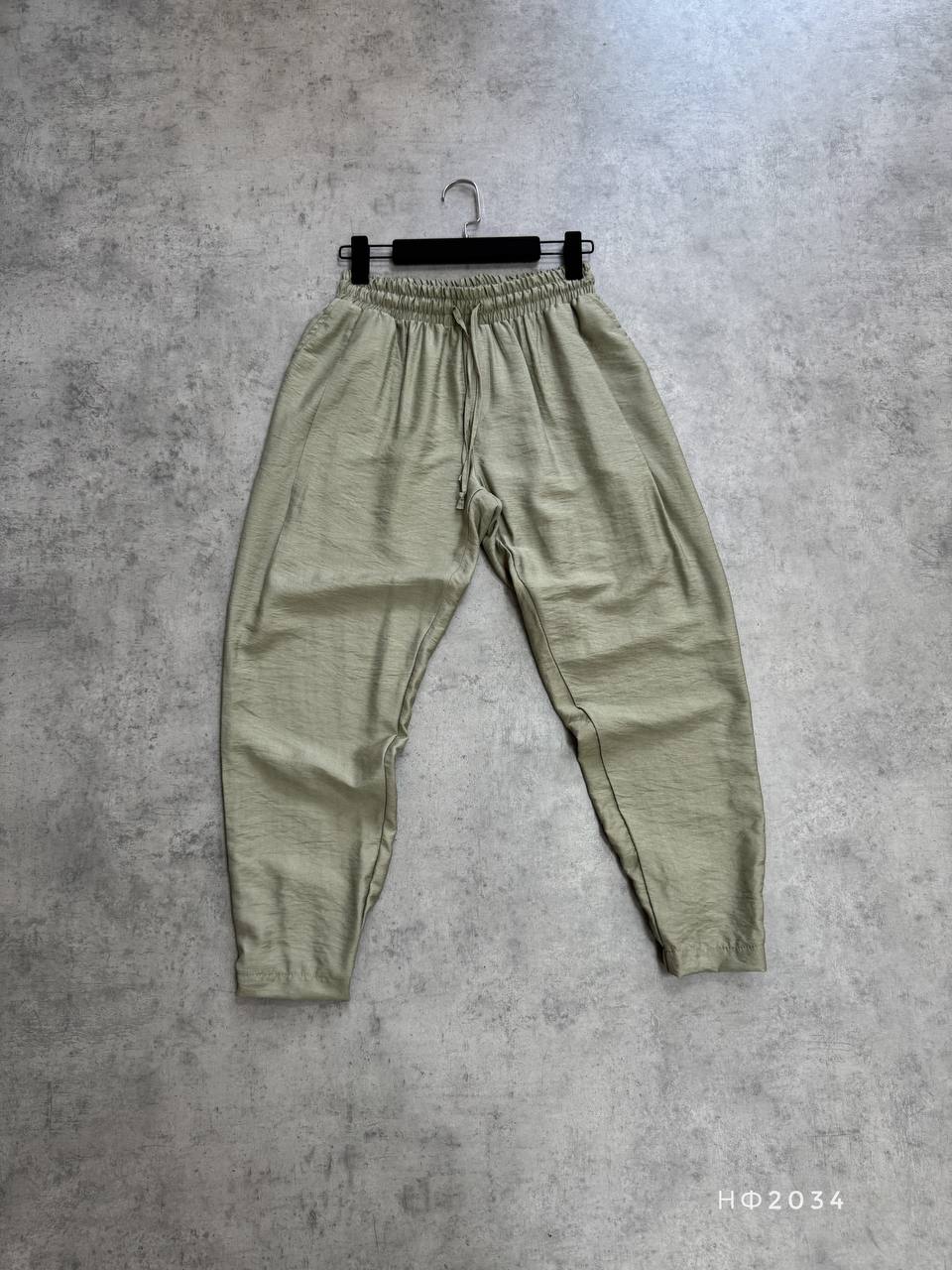 Чоловічі Вільні Літні Штани Хакі Льон Жатка на Резинці