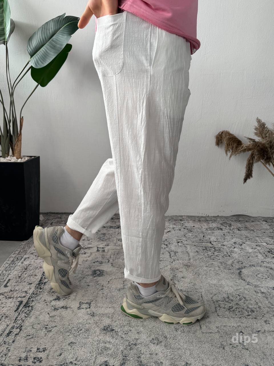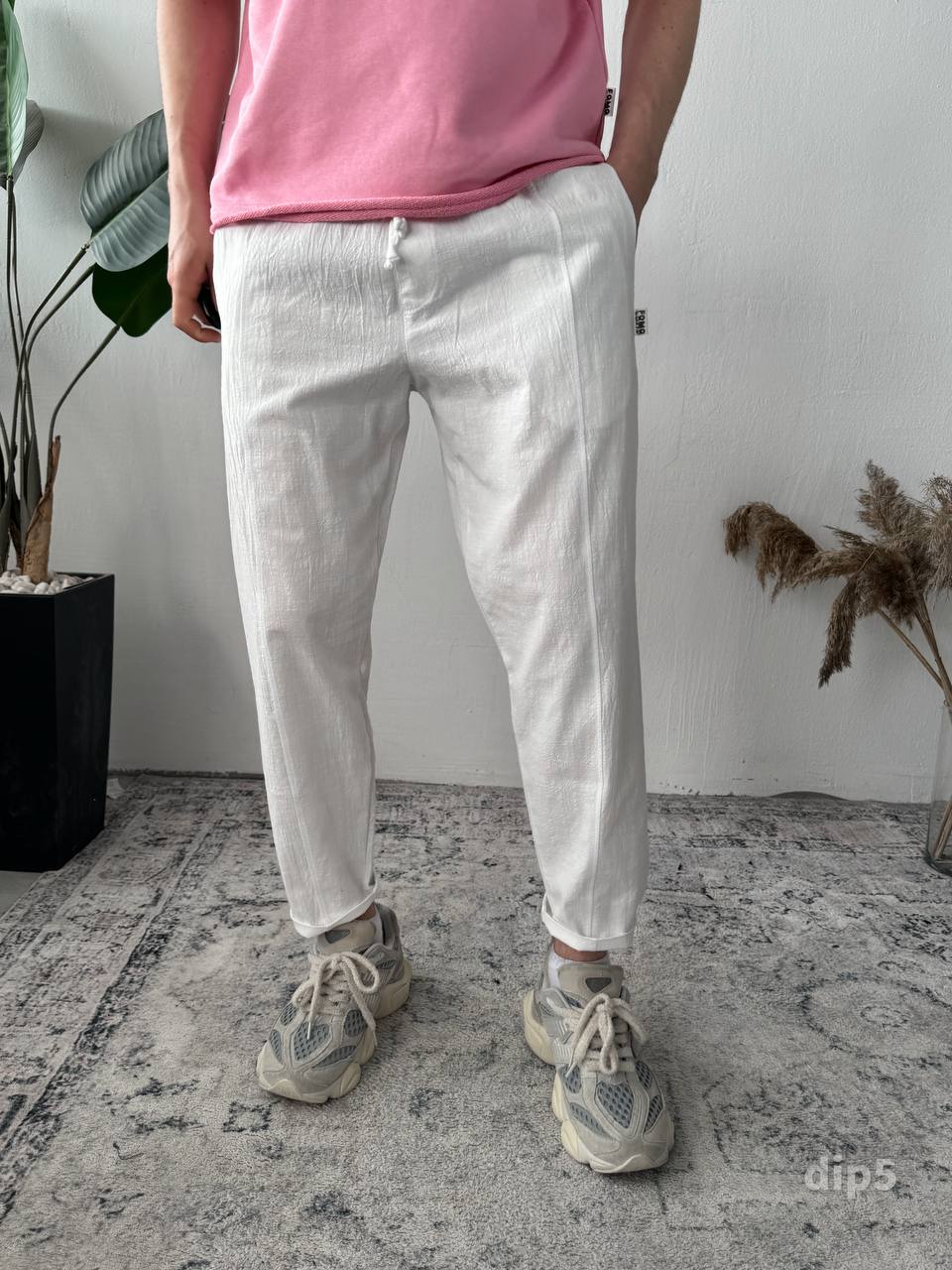 Чоловічі Базові Білі Лляні Штани Банани Вільного Крою