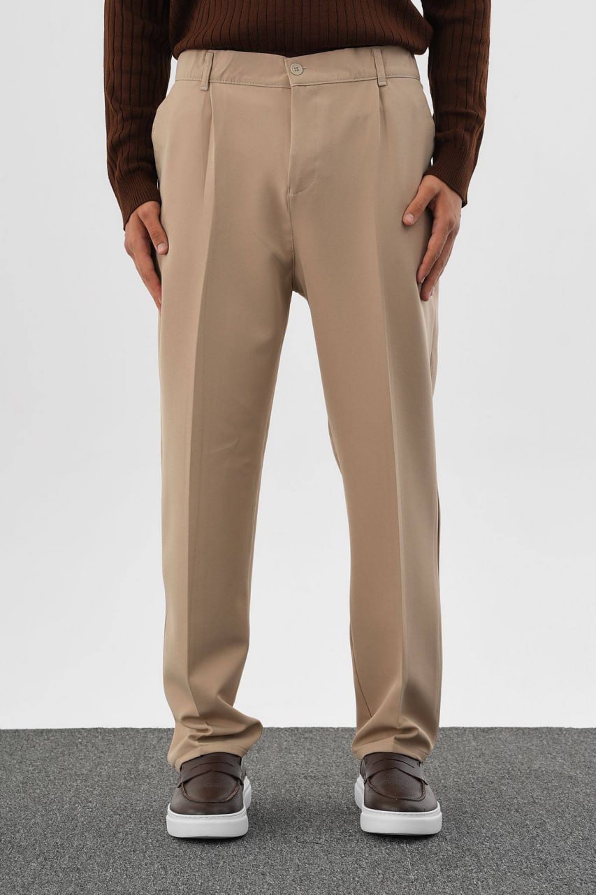 Чоловічі Класичні Бежеві Штани Брюки Вільного Крою зі Стрілками