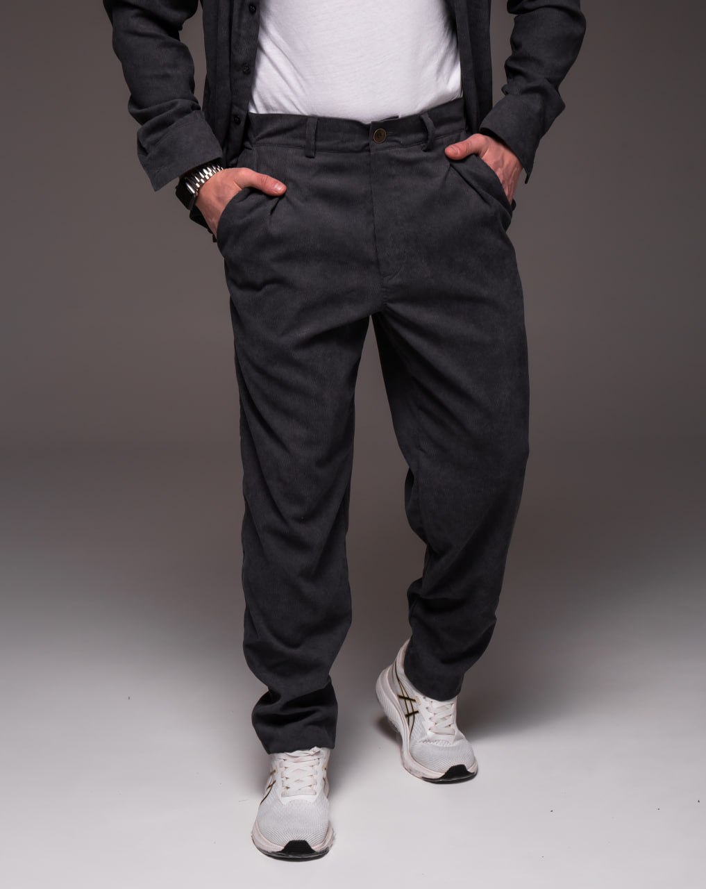 Чоловічі Класичні Графітові Штани Штани Вельвет Прямого Крою