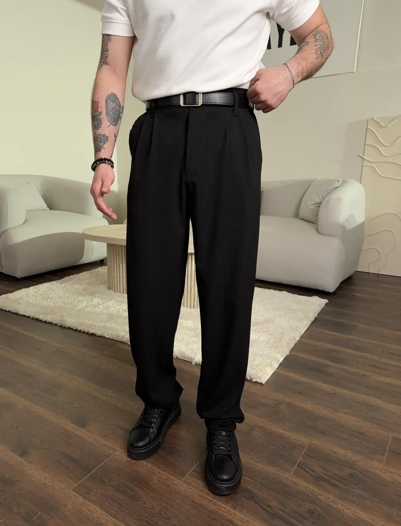 Чоловічі Класичні Широкі Чорні Штани Брюки Баггі зі Складками