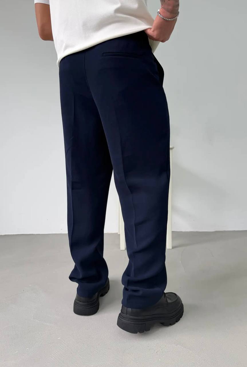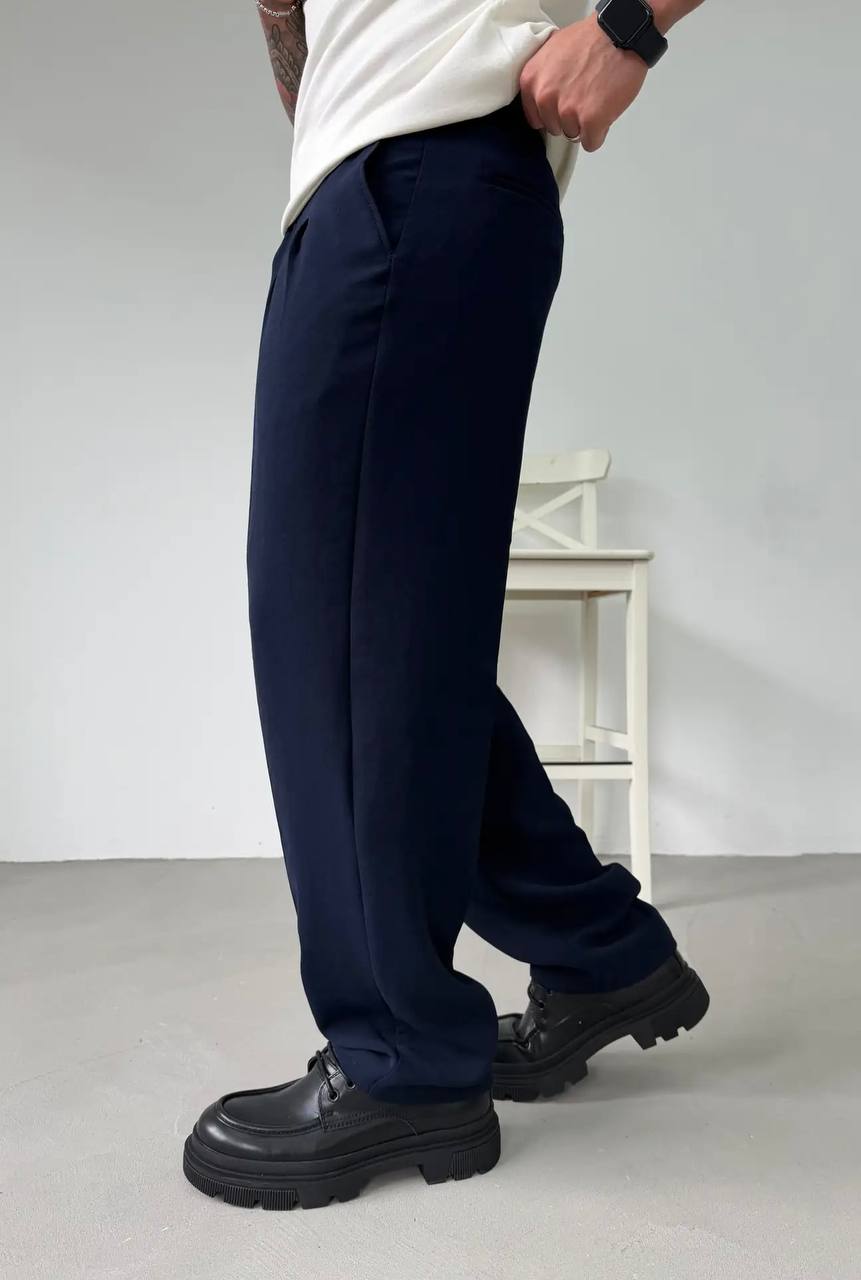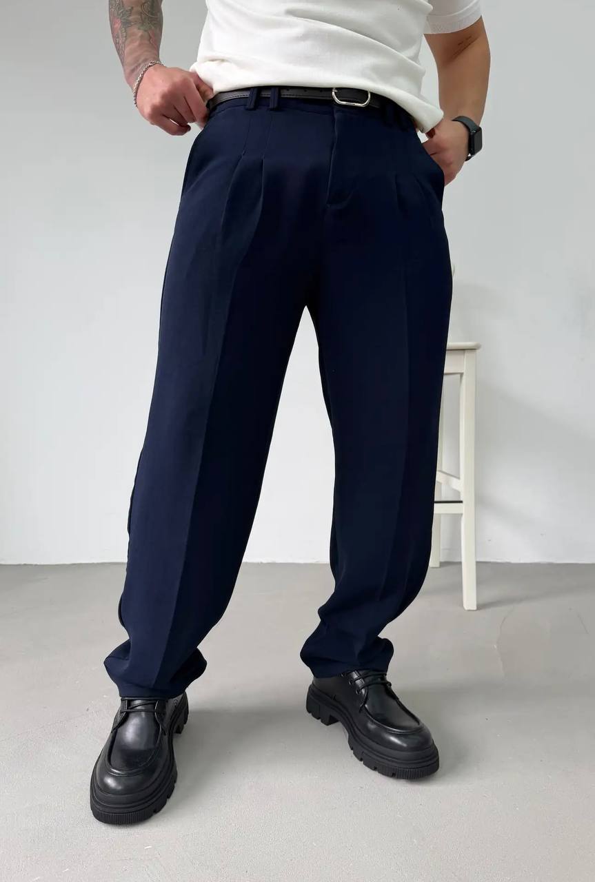 Чоловічі Класичні Широкі Темно-Сині Штани Брюки Баггі із Защіпами та Стрілками