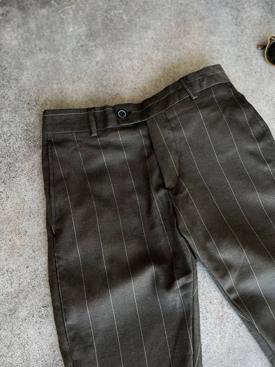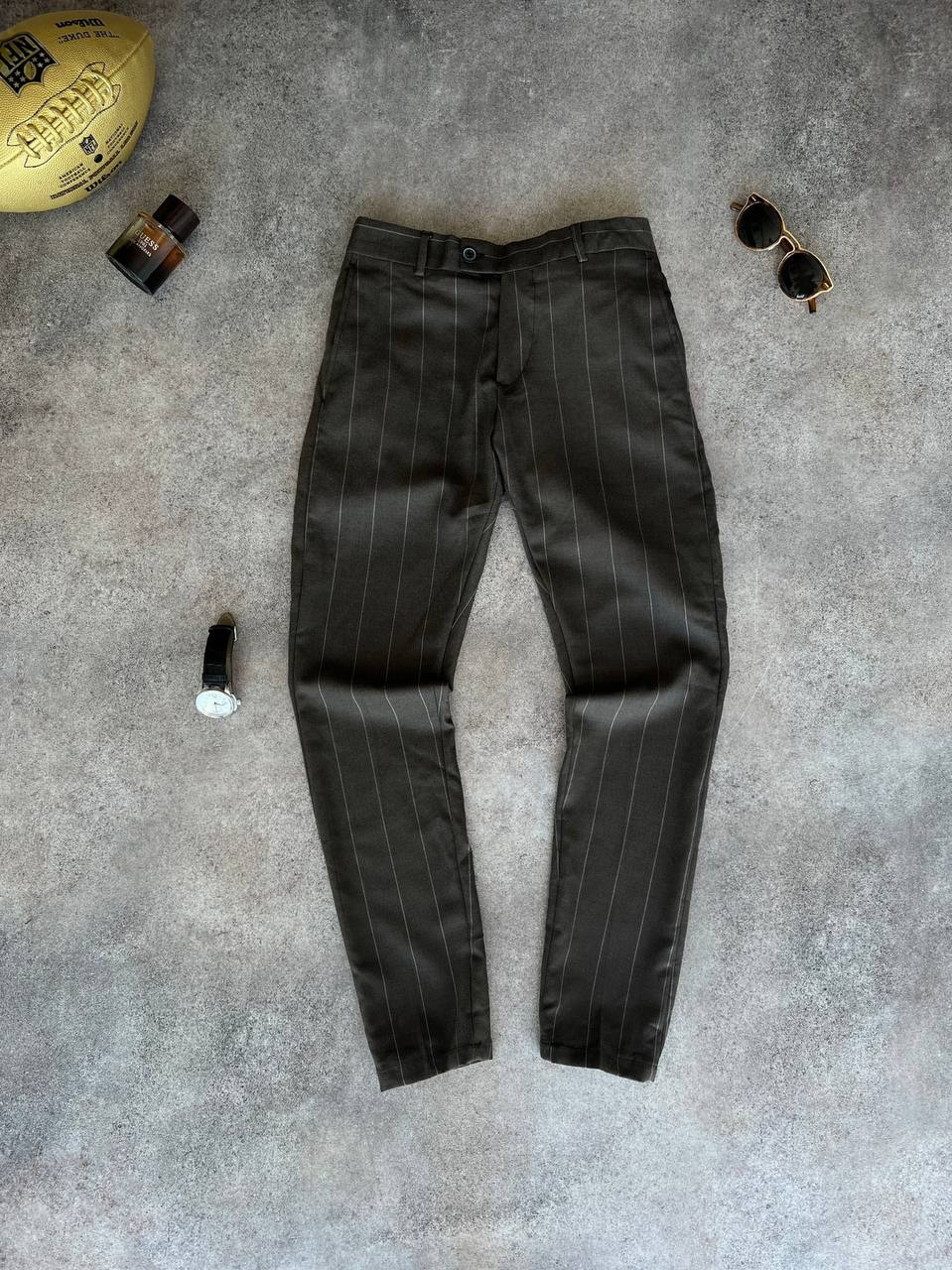 Чоловічі Класичні Темно-Сірі Штани Прямого Крою в Смужку