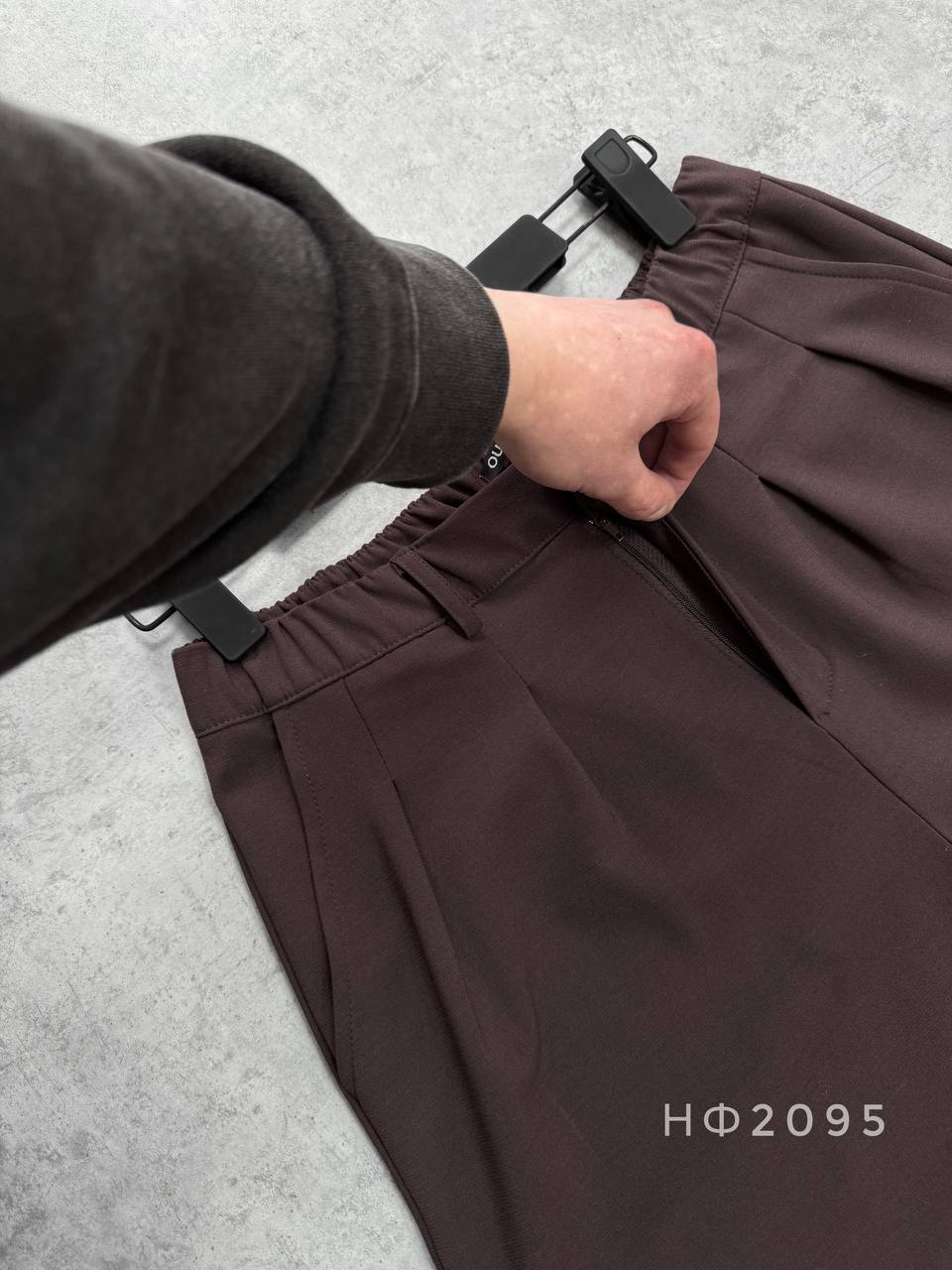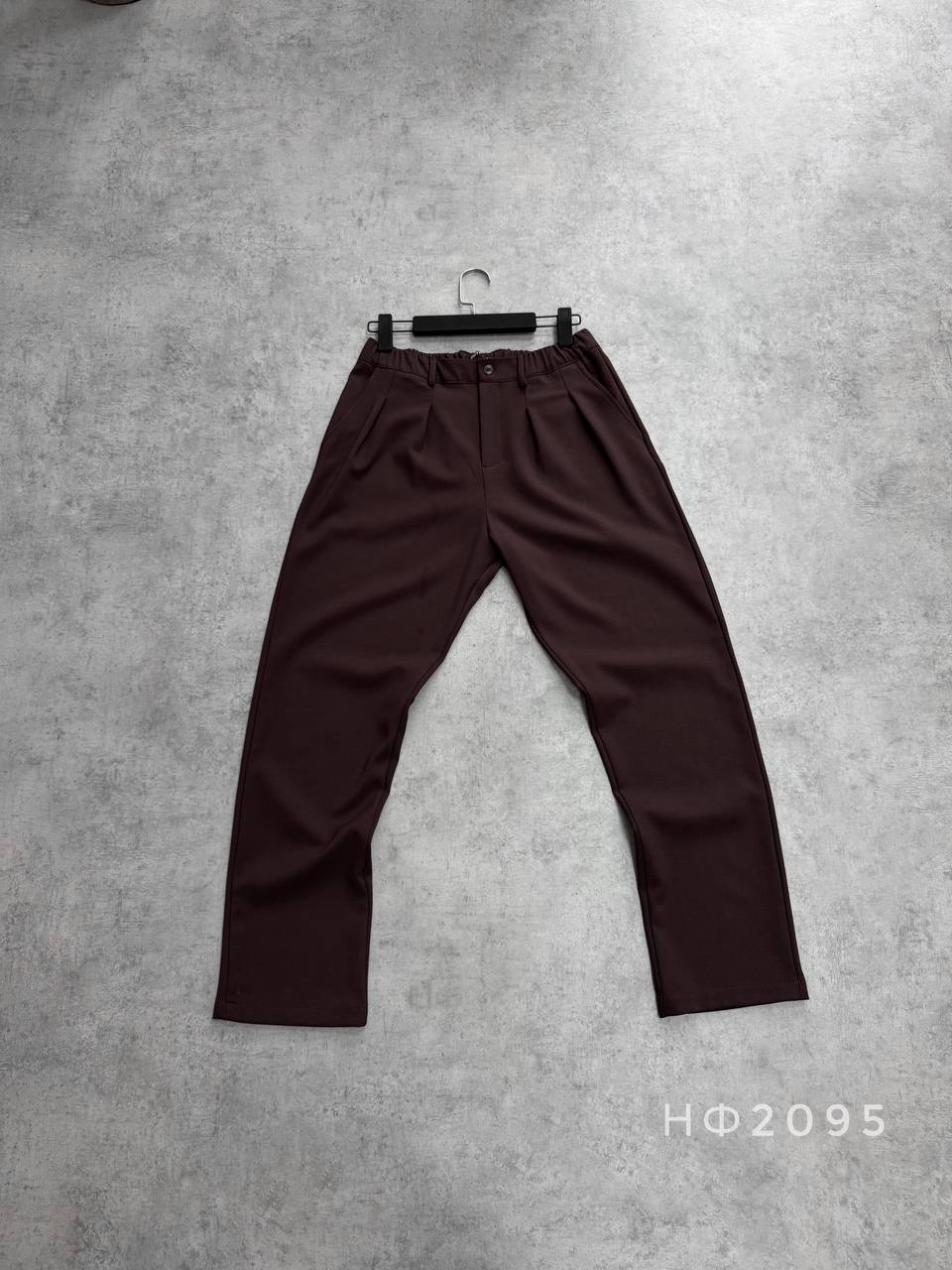 Чоловічі Класичні Вільні Коричневі Штани Брюки зі Складками та Резинкою у Поясі