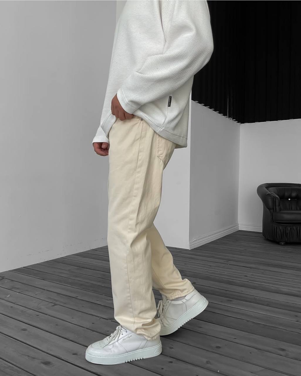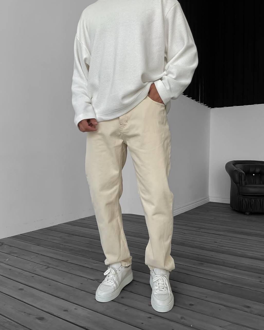 Чоловічі Базові Молочні Джинси Баггі Вільного Крою