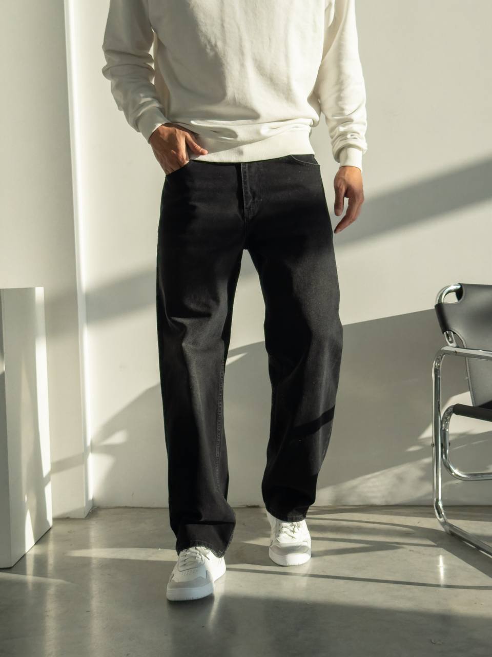 Чоловічі Чорні Широкі Джинсові Штани Баггі