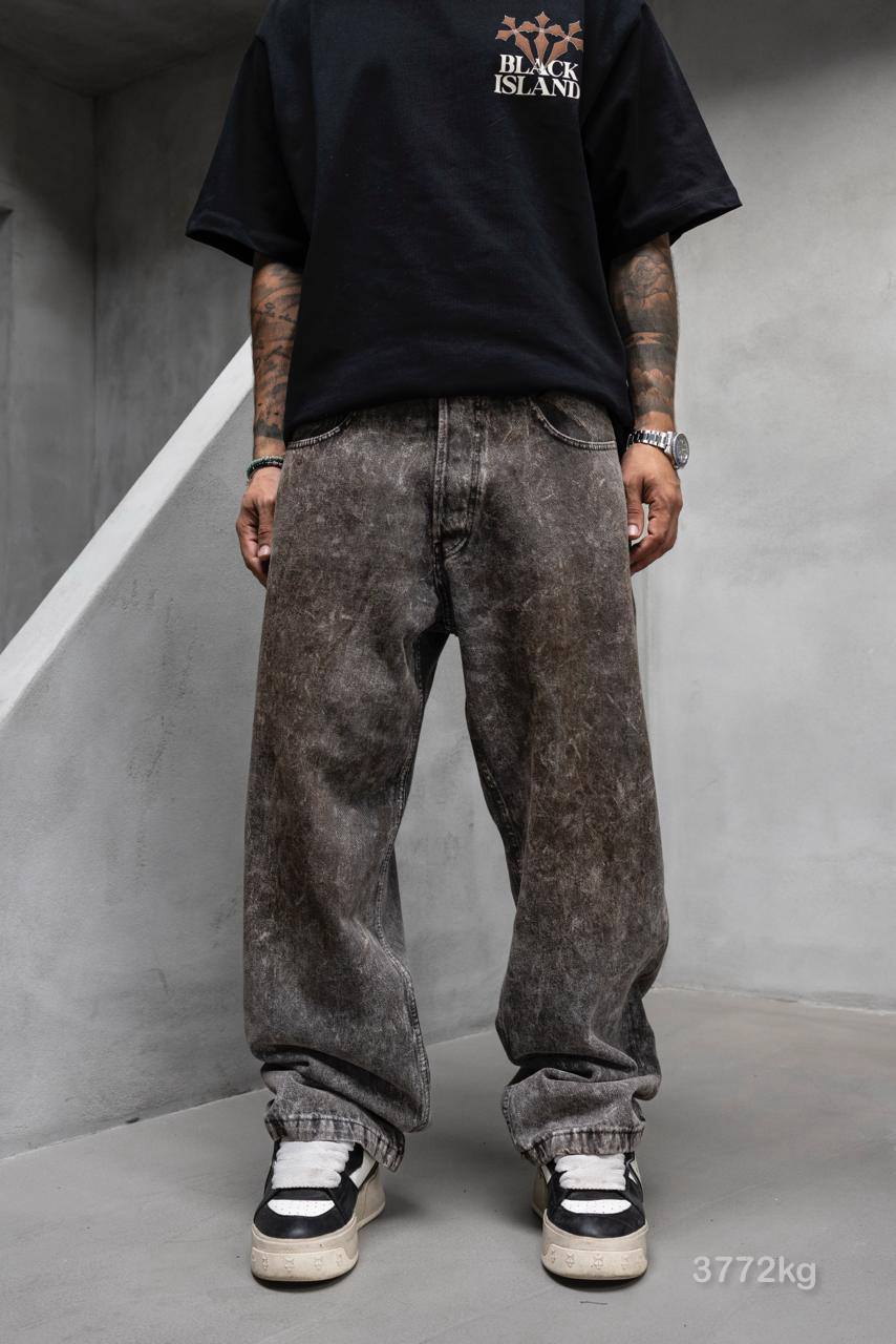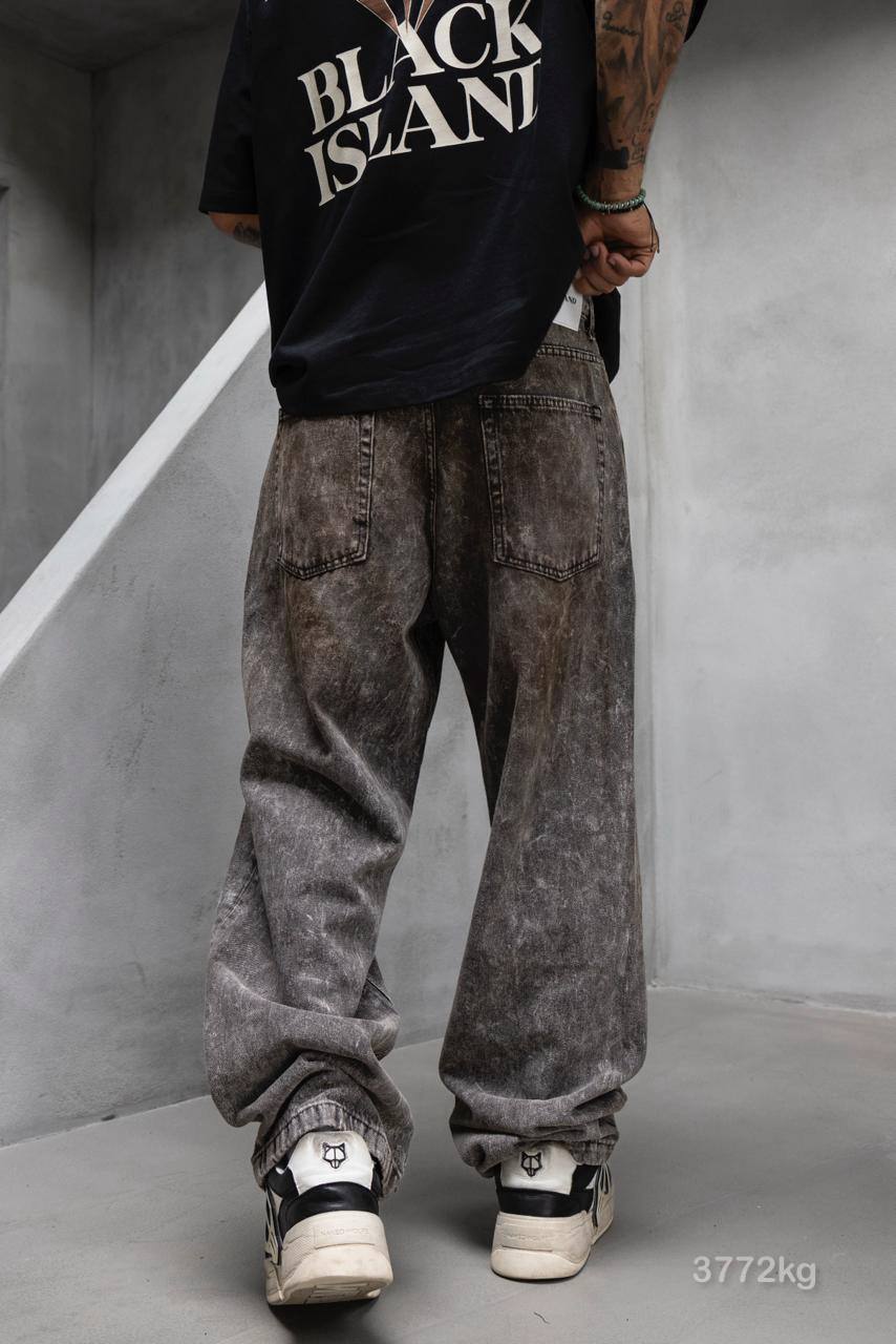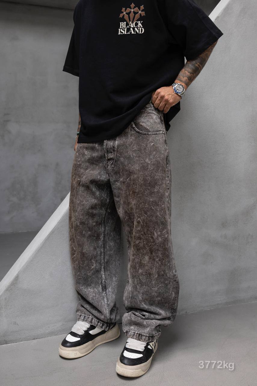 Чоловічі Графітові Варені Джинси Баггі – Широкі з Брудним Ефектом