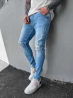 Чоловічі Рвані Джинси Блакитні – Світлі Звужені