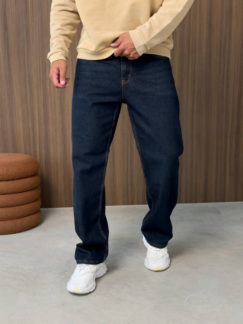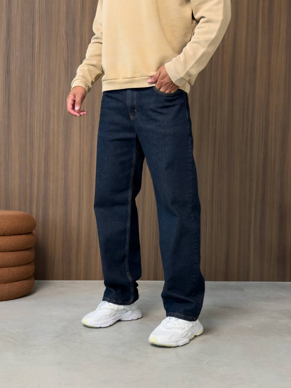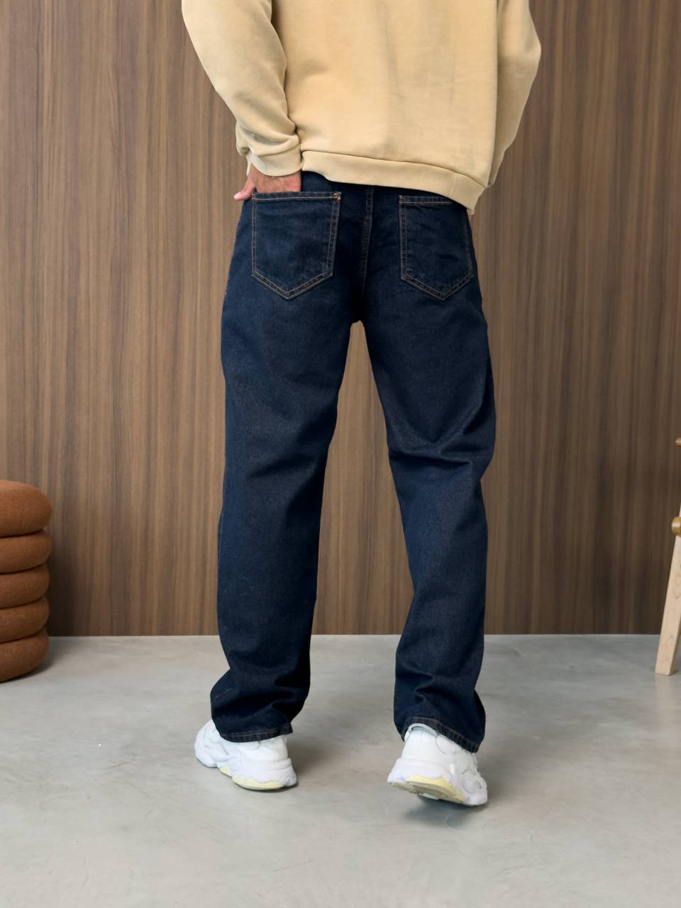 Мужские Широкие Темно-Синие Джинсы Багги - Свободные Прямого Кроя