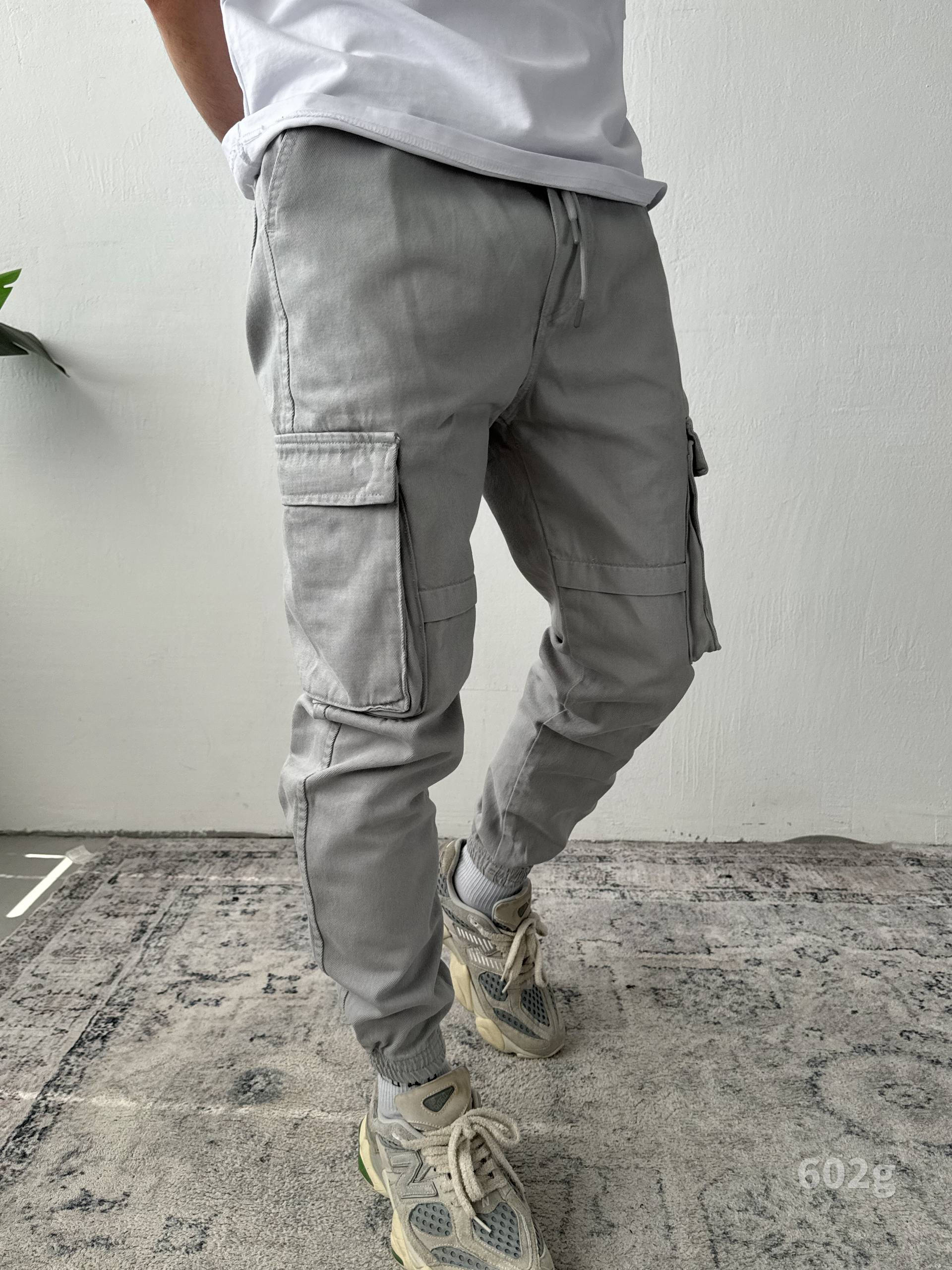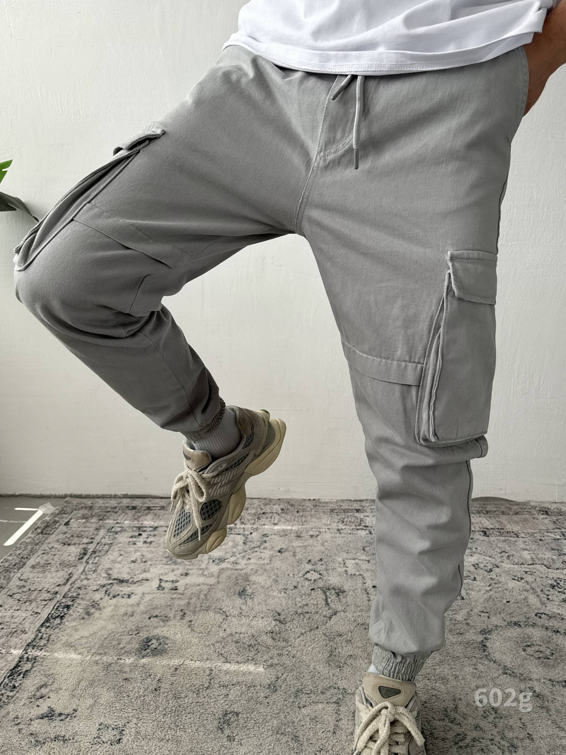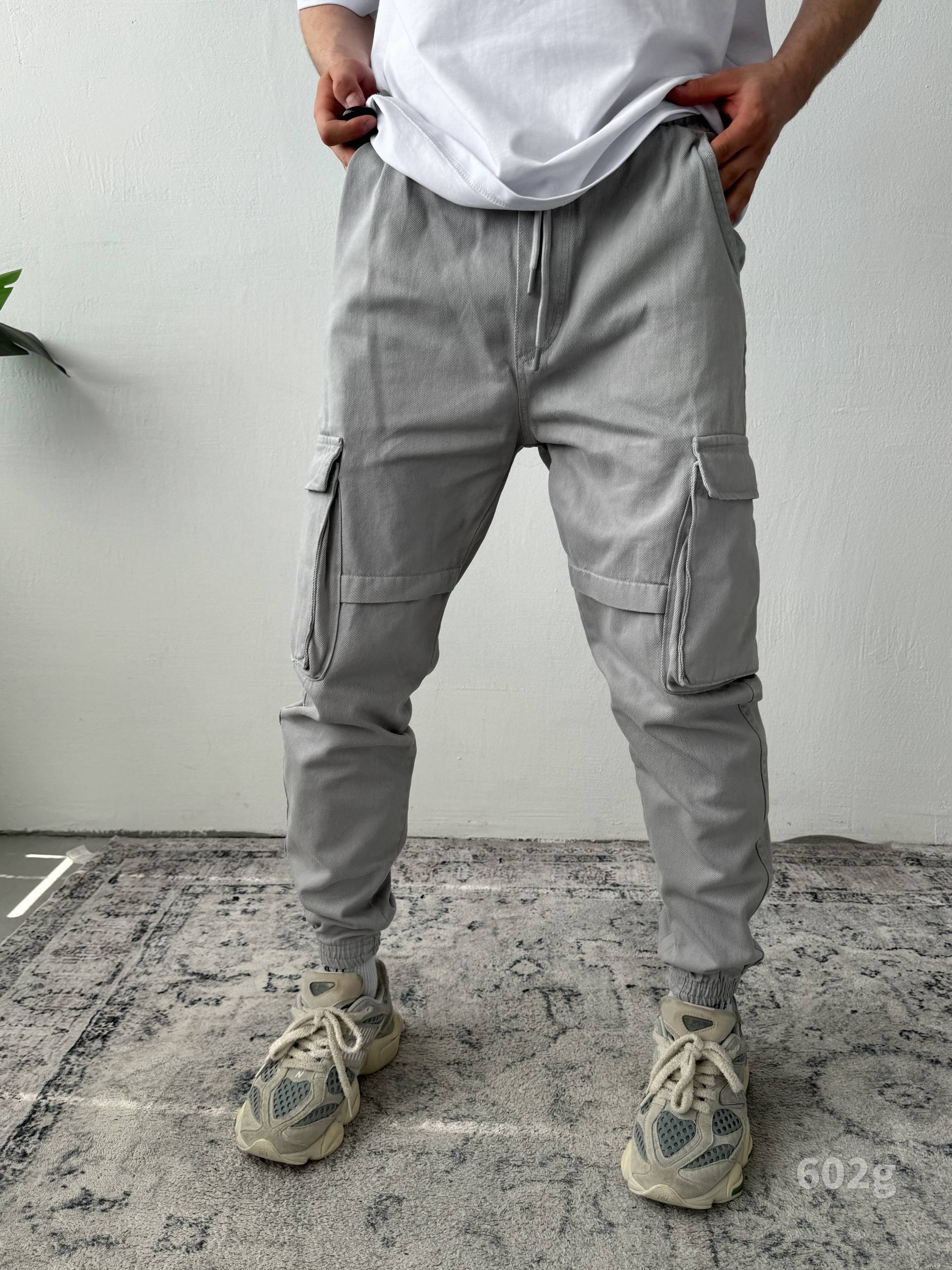 Чоловічі Сірі Джинси Карго – Вільні з Накладними Кишенями та Манжетами на Резинці