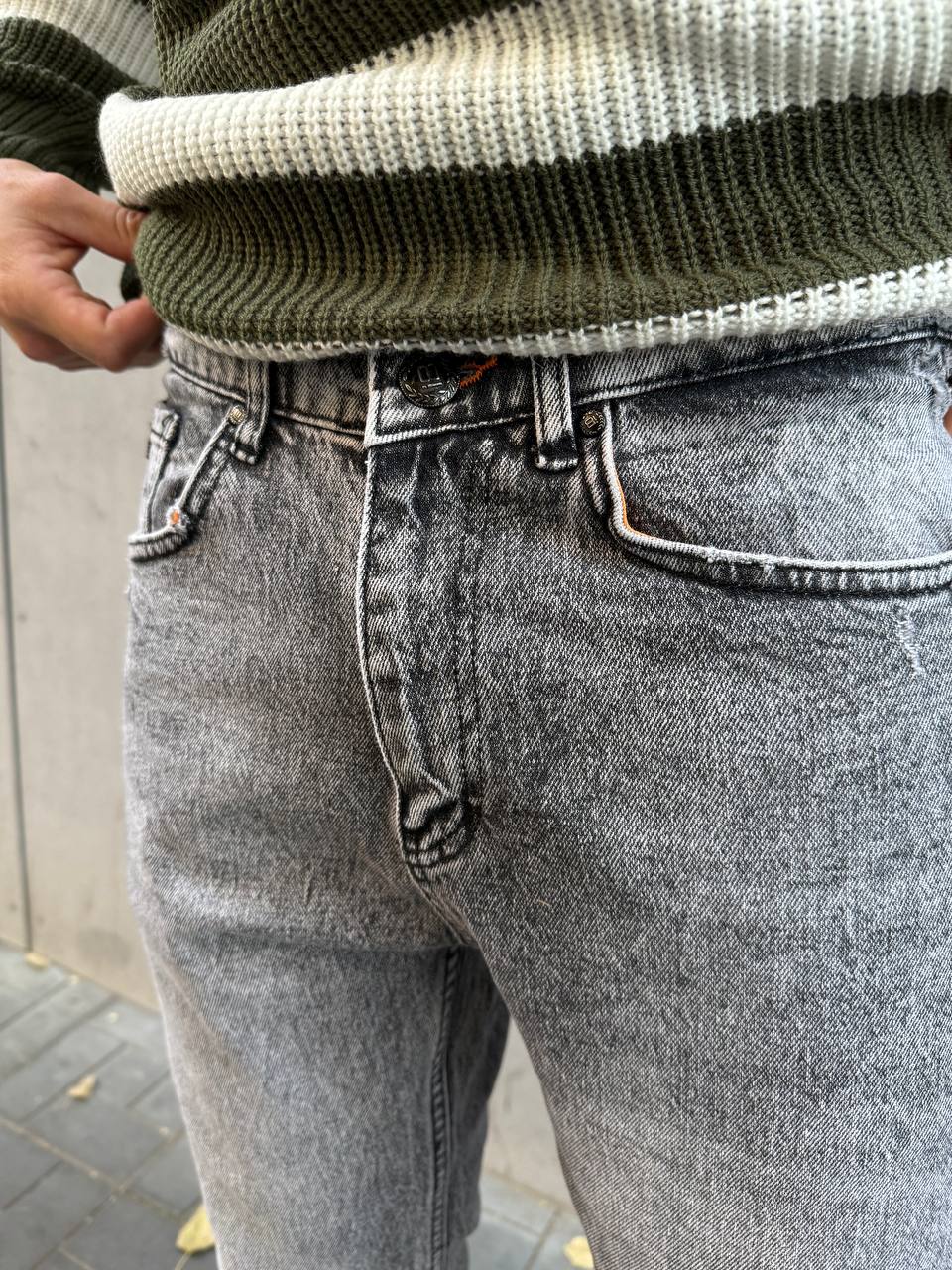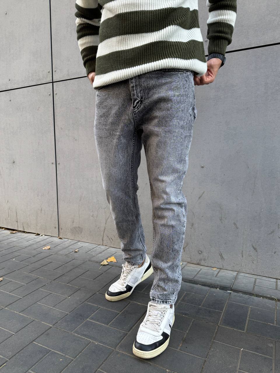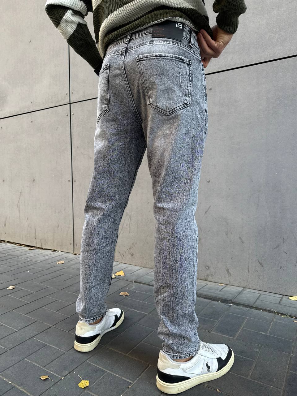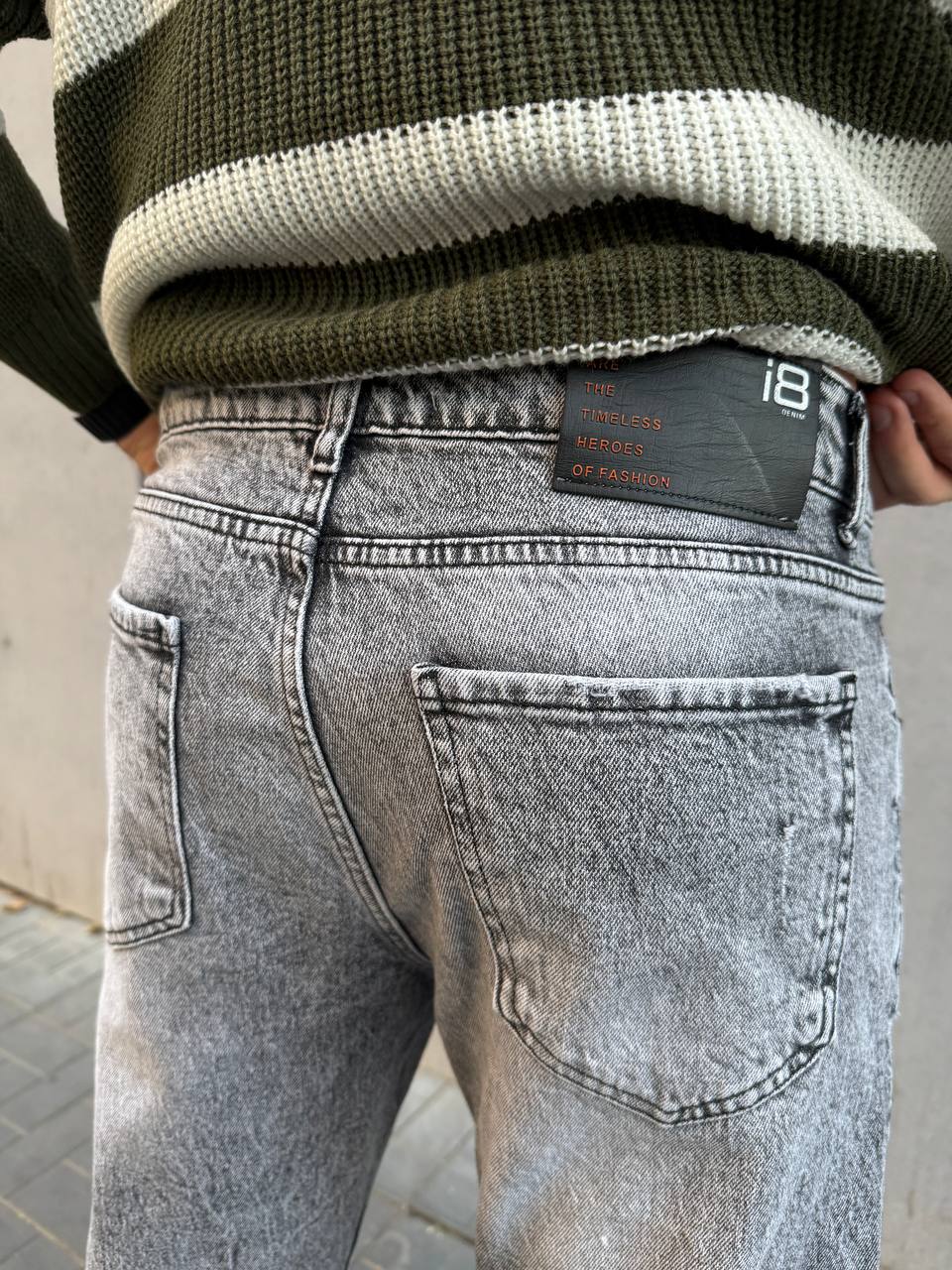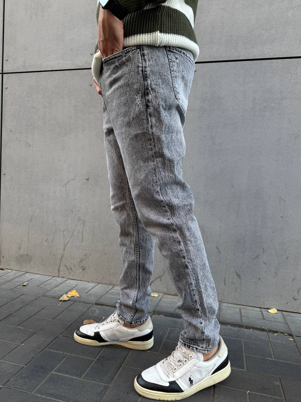 Чоловічі Сірі Джинси Мом Варьонки з Потертостями