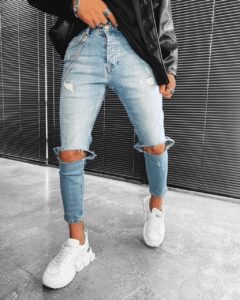 Будьте першим, хто залишив відгук “Чоловічі Сині Джинси з Ланцюгом – Вузькі з Рваними Колінами та Потертостями”“ Скасувати коментар