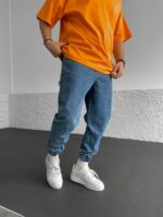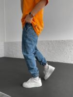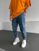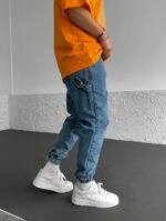 Чоловічі Вільні Джинси у Синьому Цвіті на Липучках