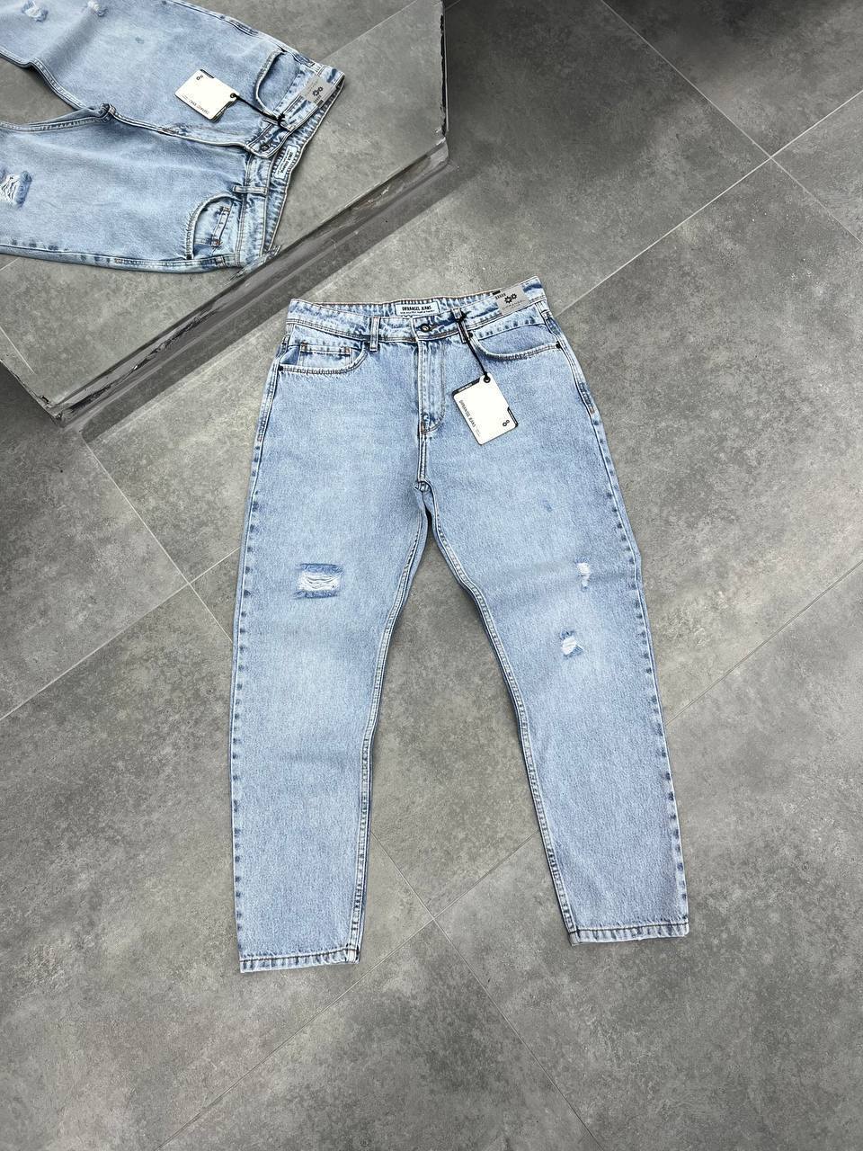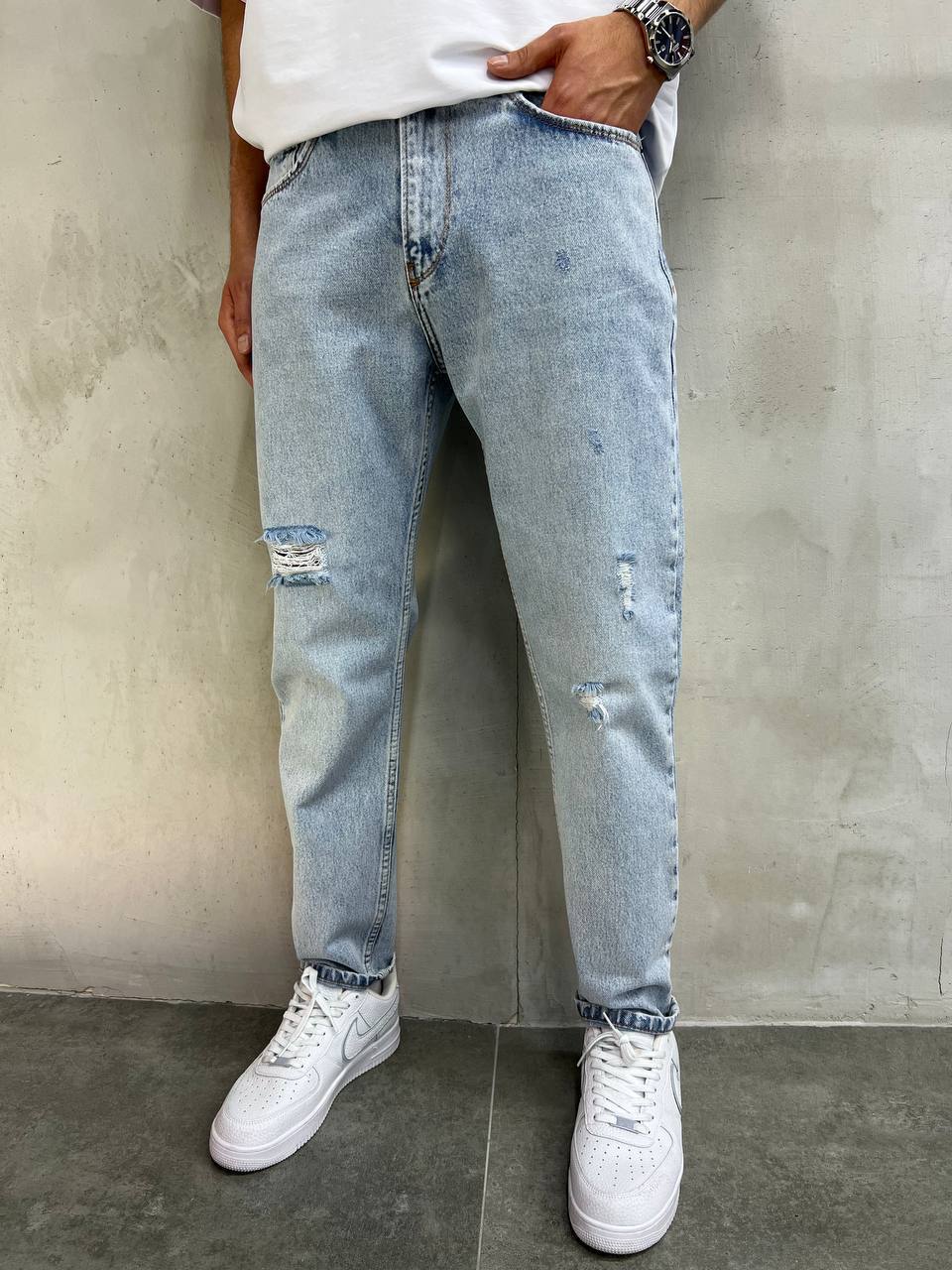 Чоловічі Вільні Світло-Блакитні Джинси Варені – Рвані Джинсові Штани Мом