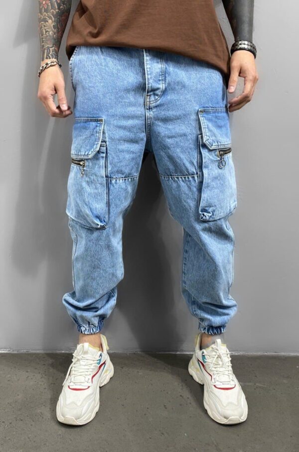 Чоловічі Джоггери в Синьому Кольорі – Джинси на Манжетах з Накладними Кишенями