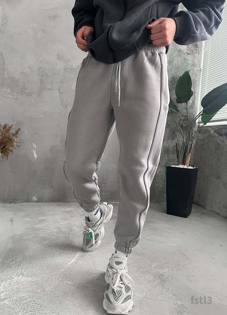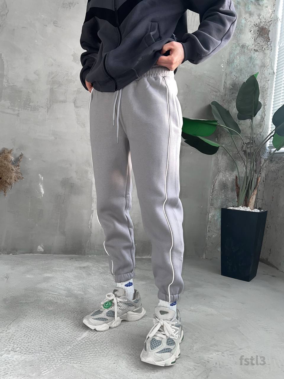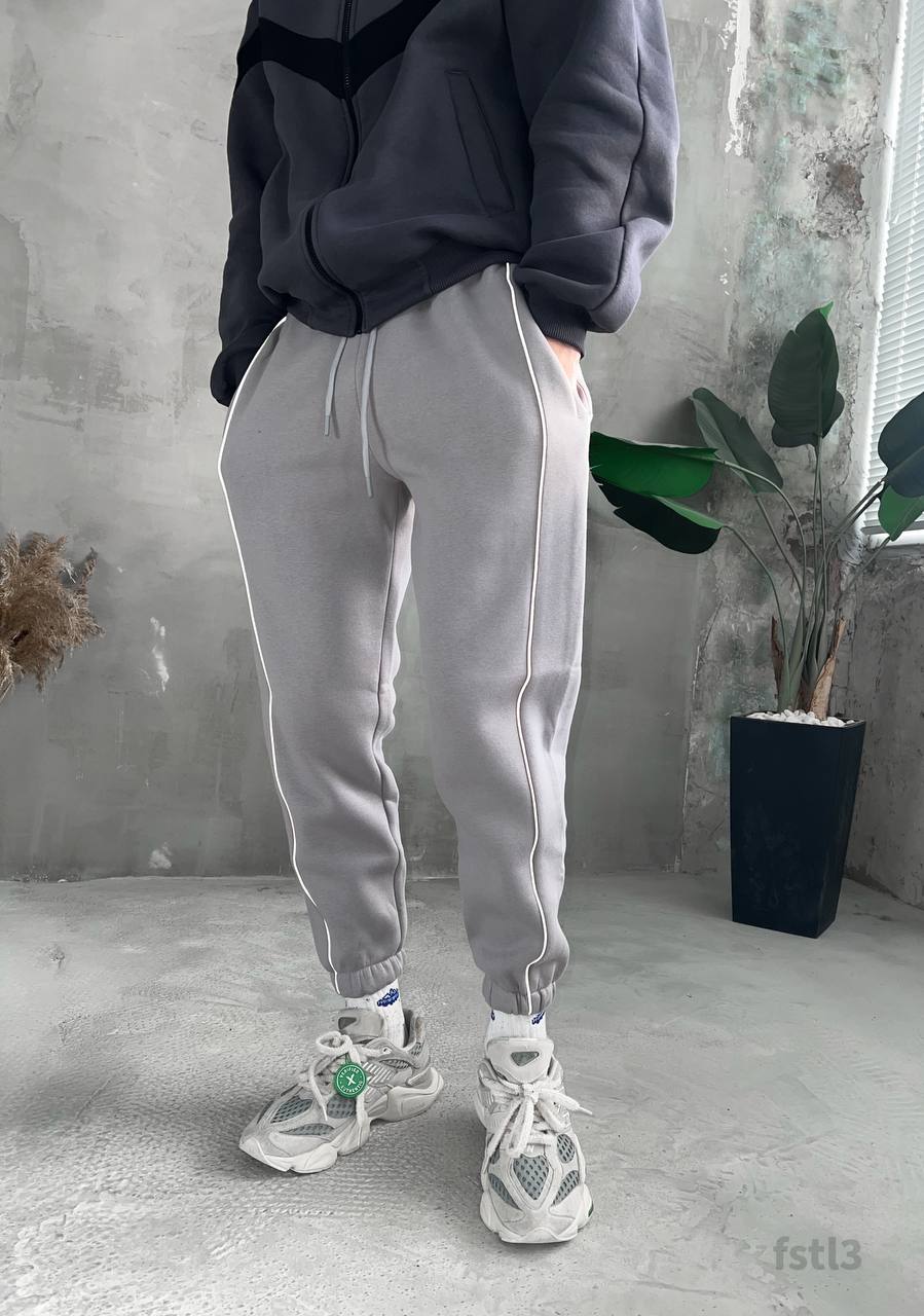 Чоловічі Теплі Сірі Спортивні Штани Джогери з Рефлективним Кантом – Тринитка на Флісі