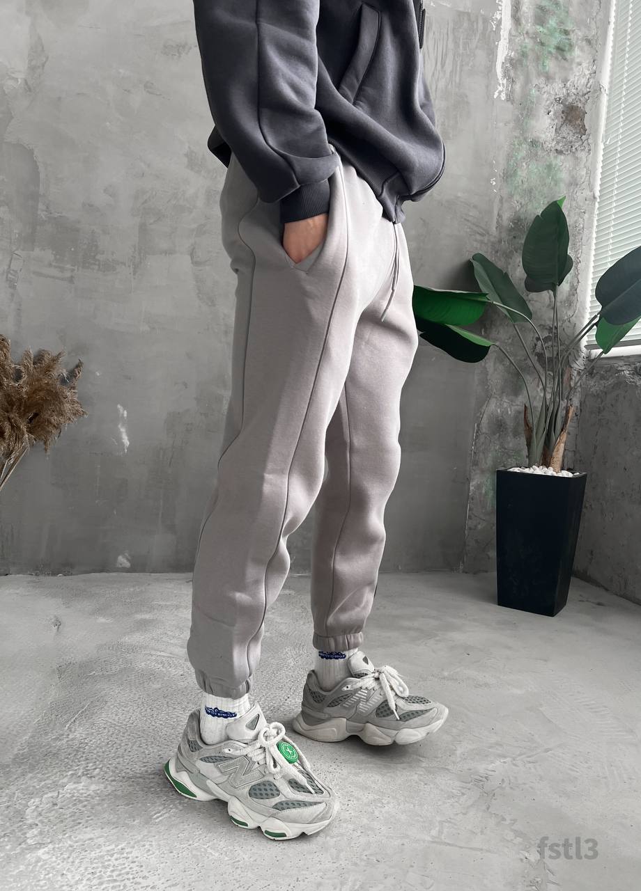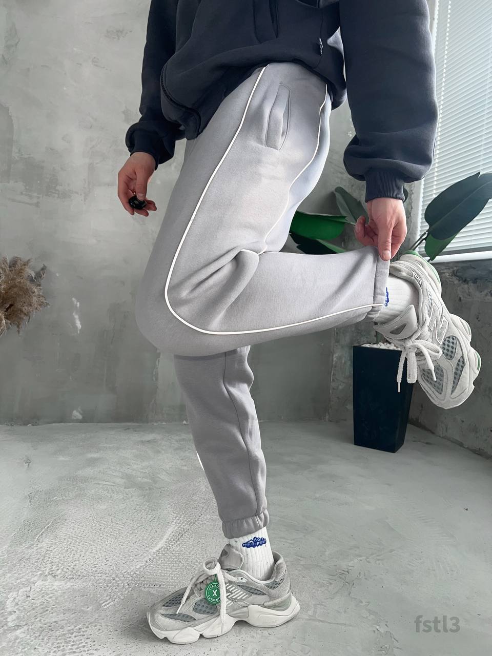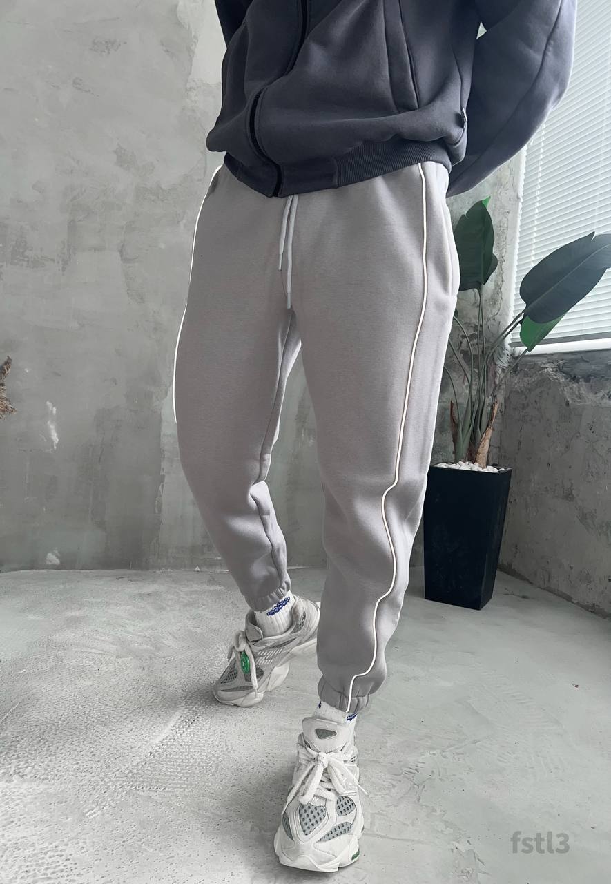 Чоловічі Теплі Сірі Спортивні Штани Джогери з Рефлективним Кантом – Тринитка на Флісі
