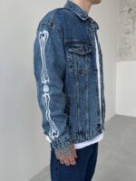 Чоловіча Синя Джинсівка Варенка Оверсайз з Прінтами Кістками на Рукава