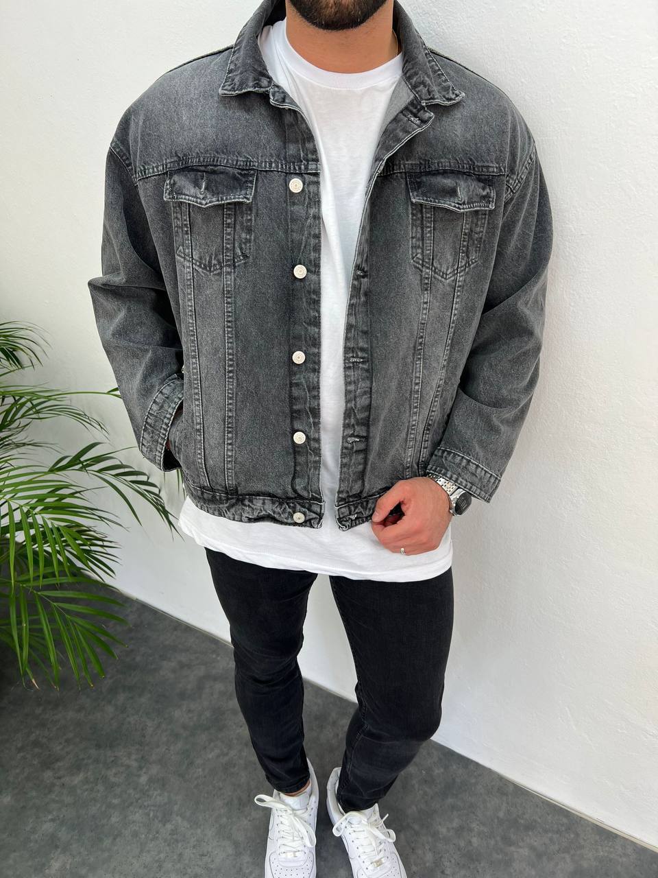 Чоловіча Графітова Джинсівка Варена – Вільного Крою на Ґудзиках