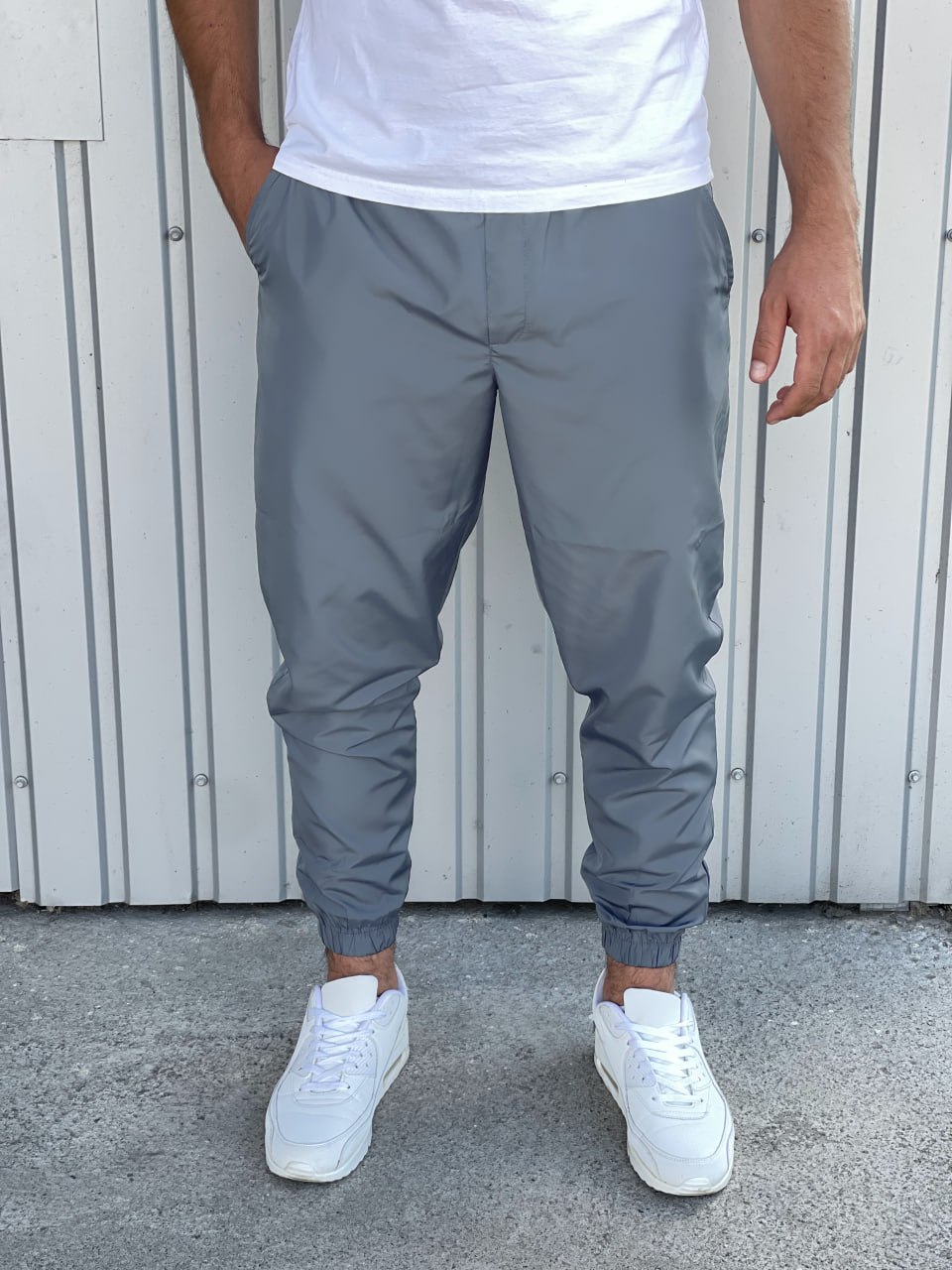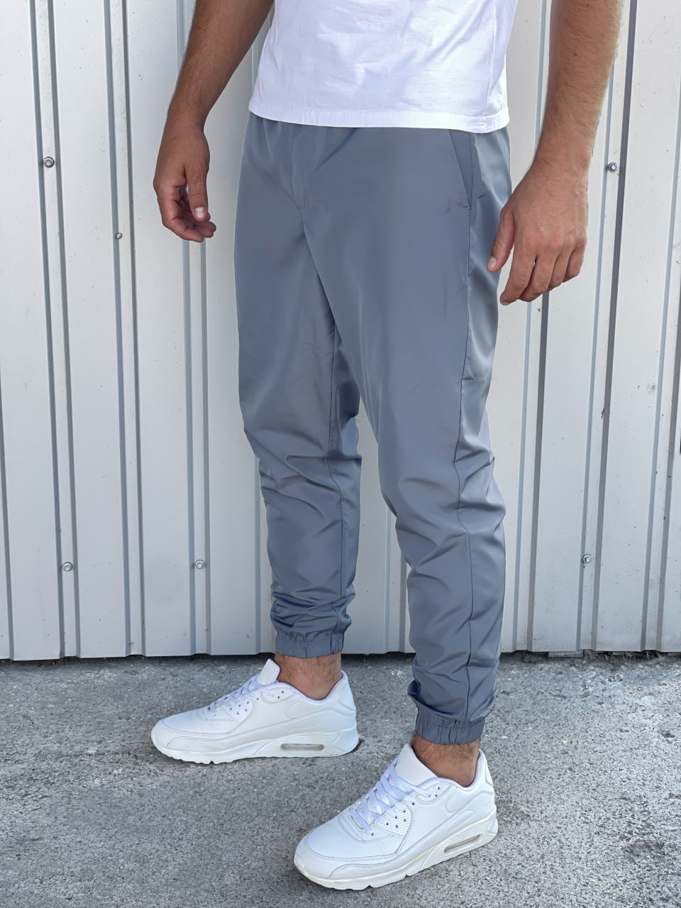 Чоловічі Демісезонні Сірі Штани Джогери Плащівка на Резинках Внизу
