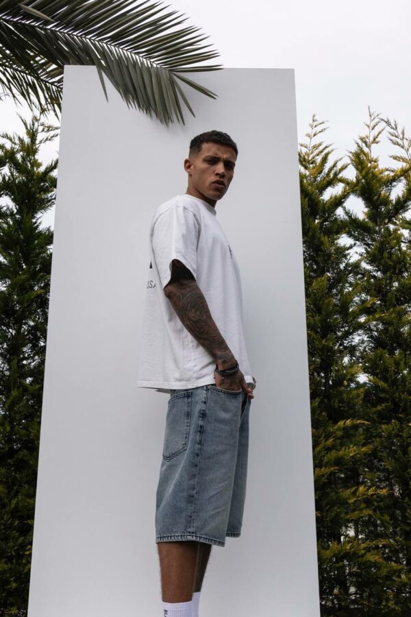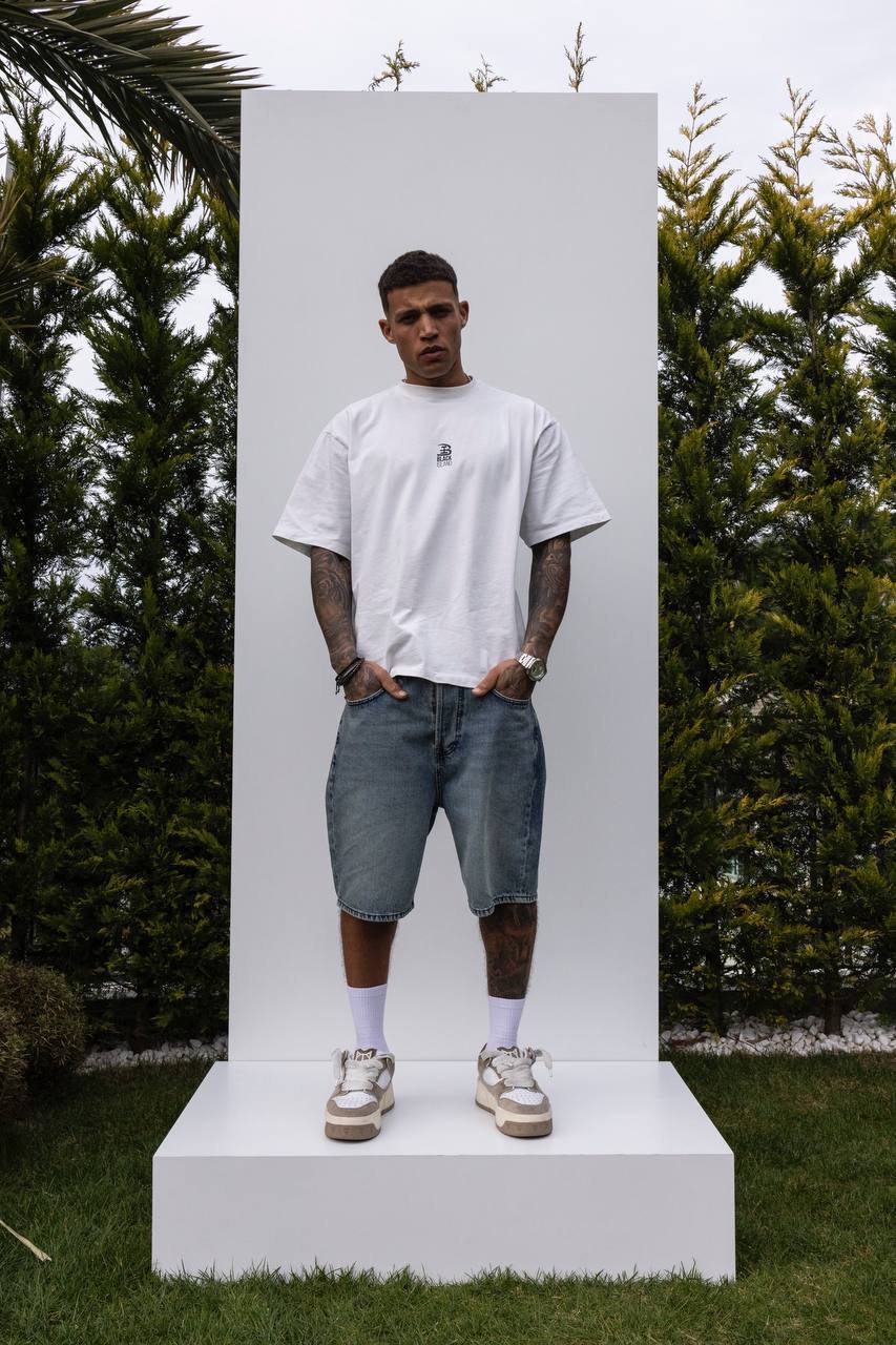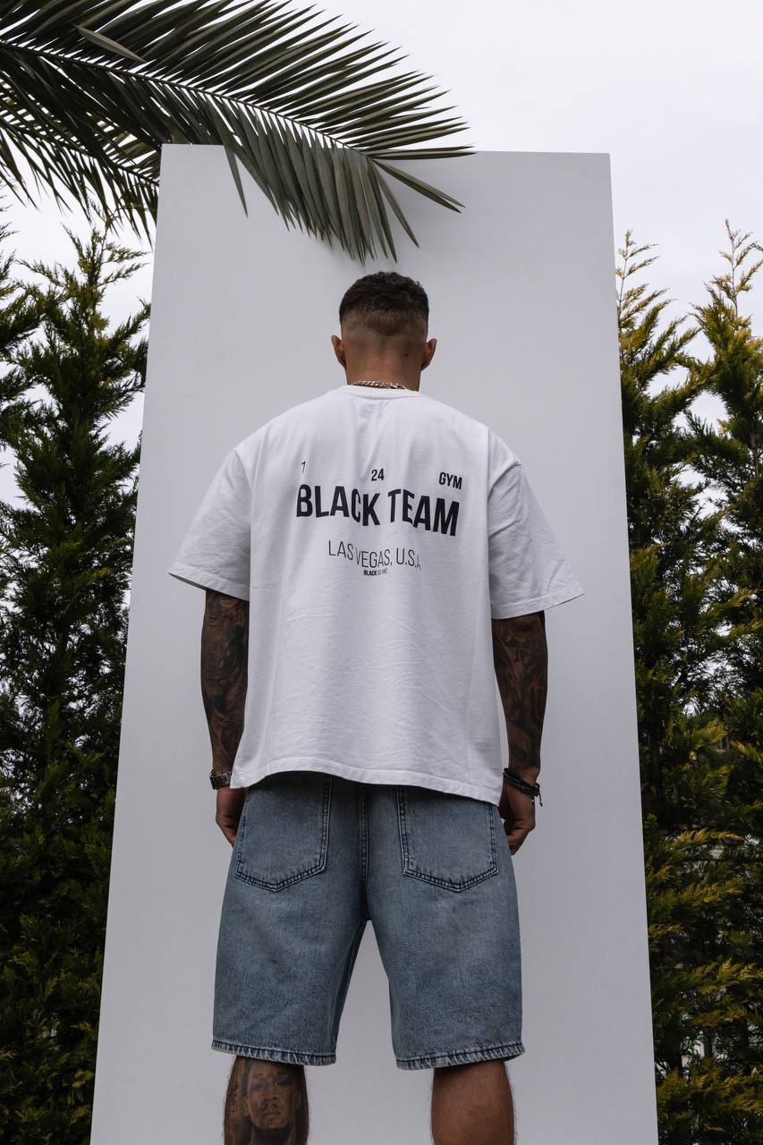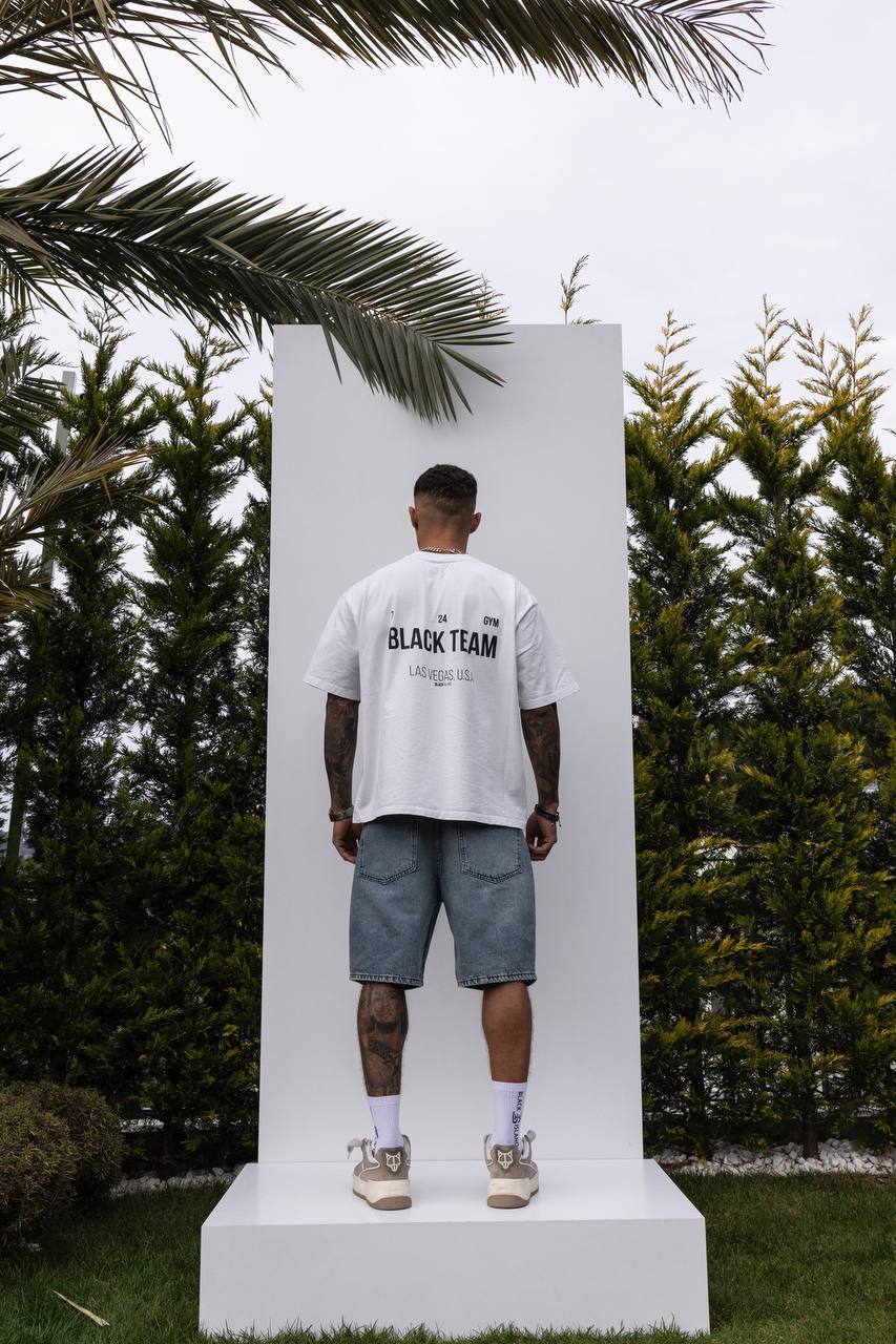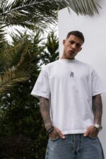 Чоловіча Бавовняна Біла Футболка Вільного Крою з Написом на Спині