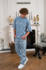 Чоловіча Бавовняна Футболка Блакитного Кольору Оверсайз з Написами