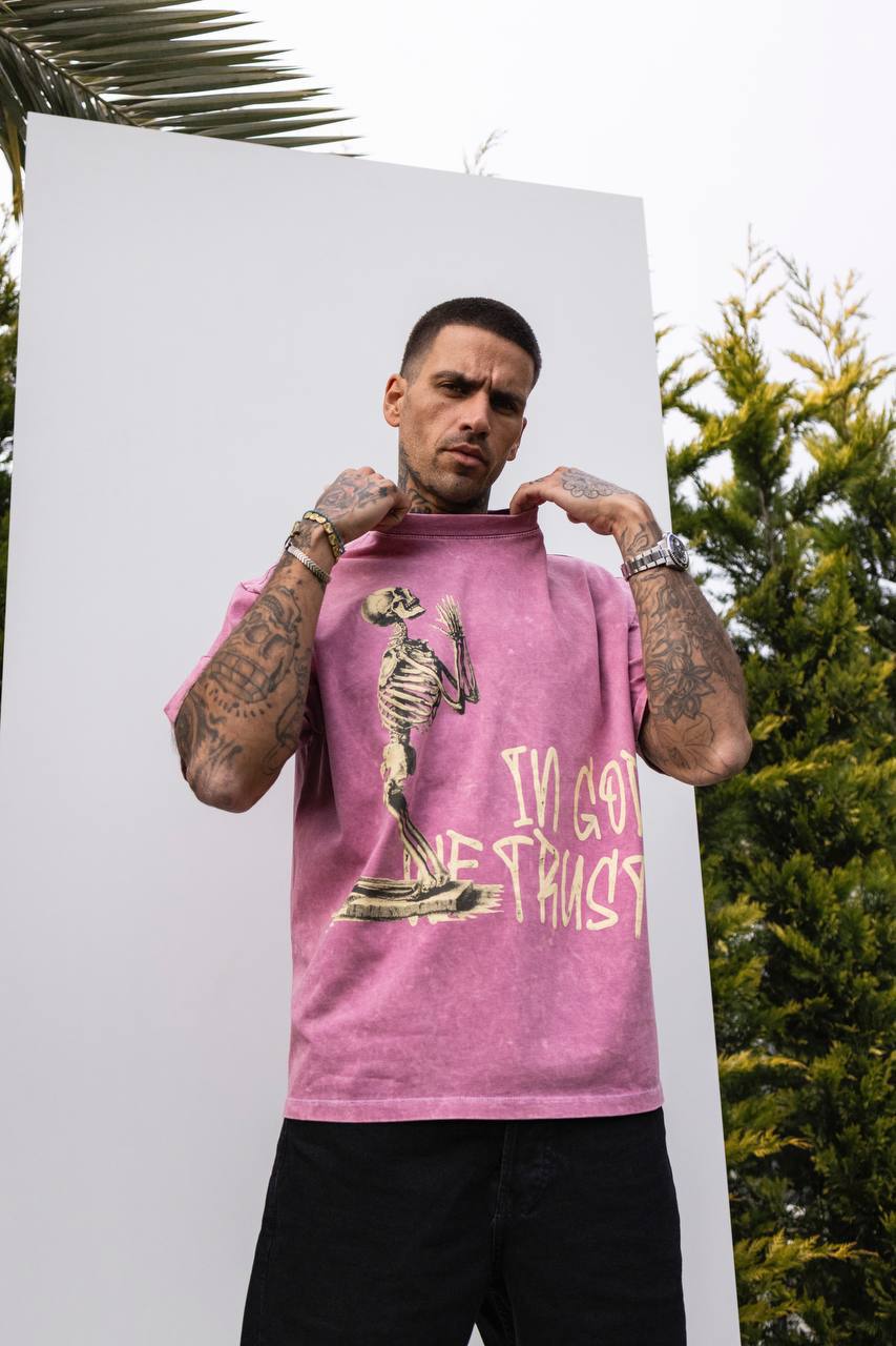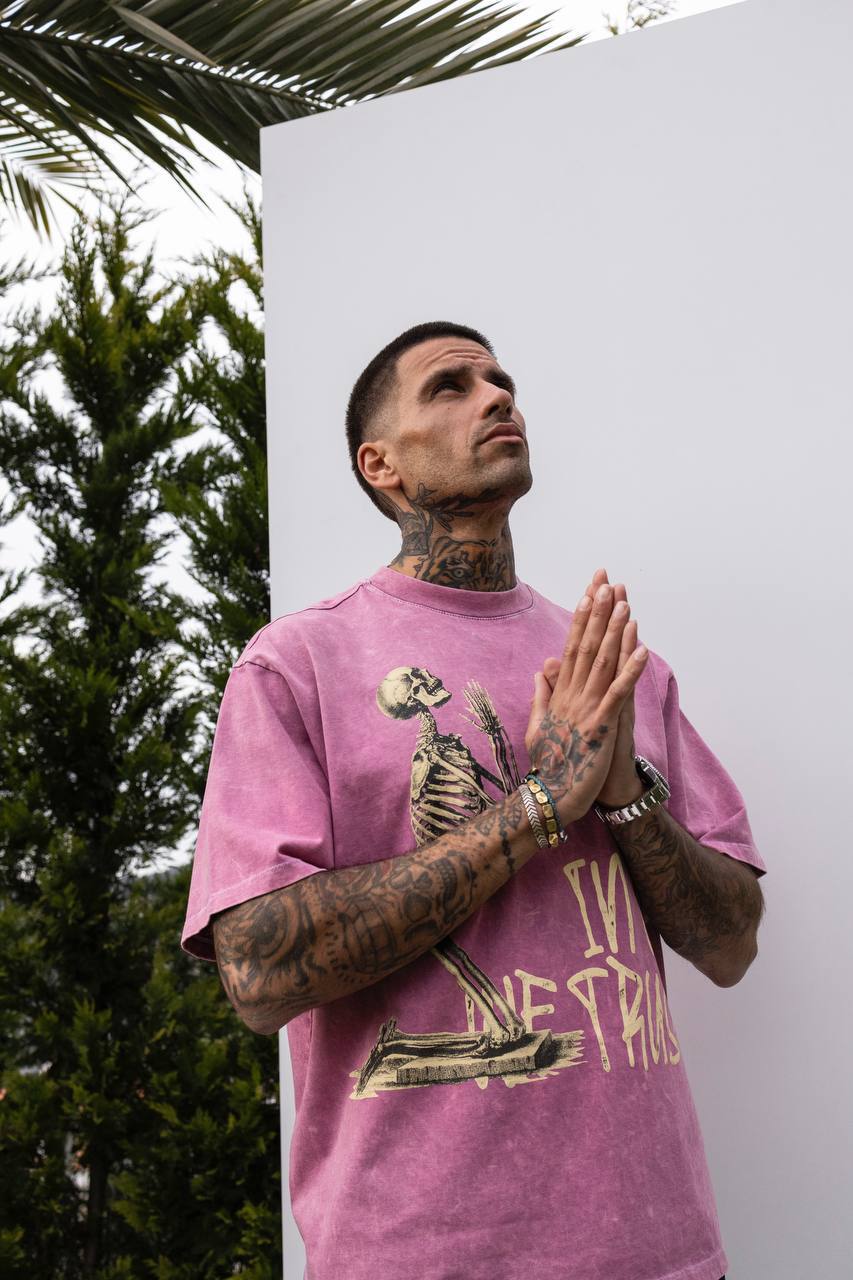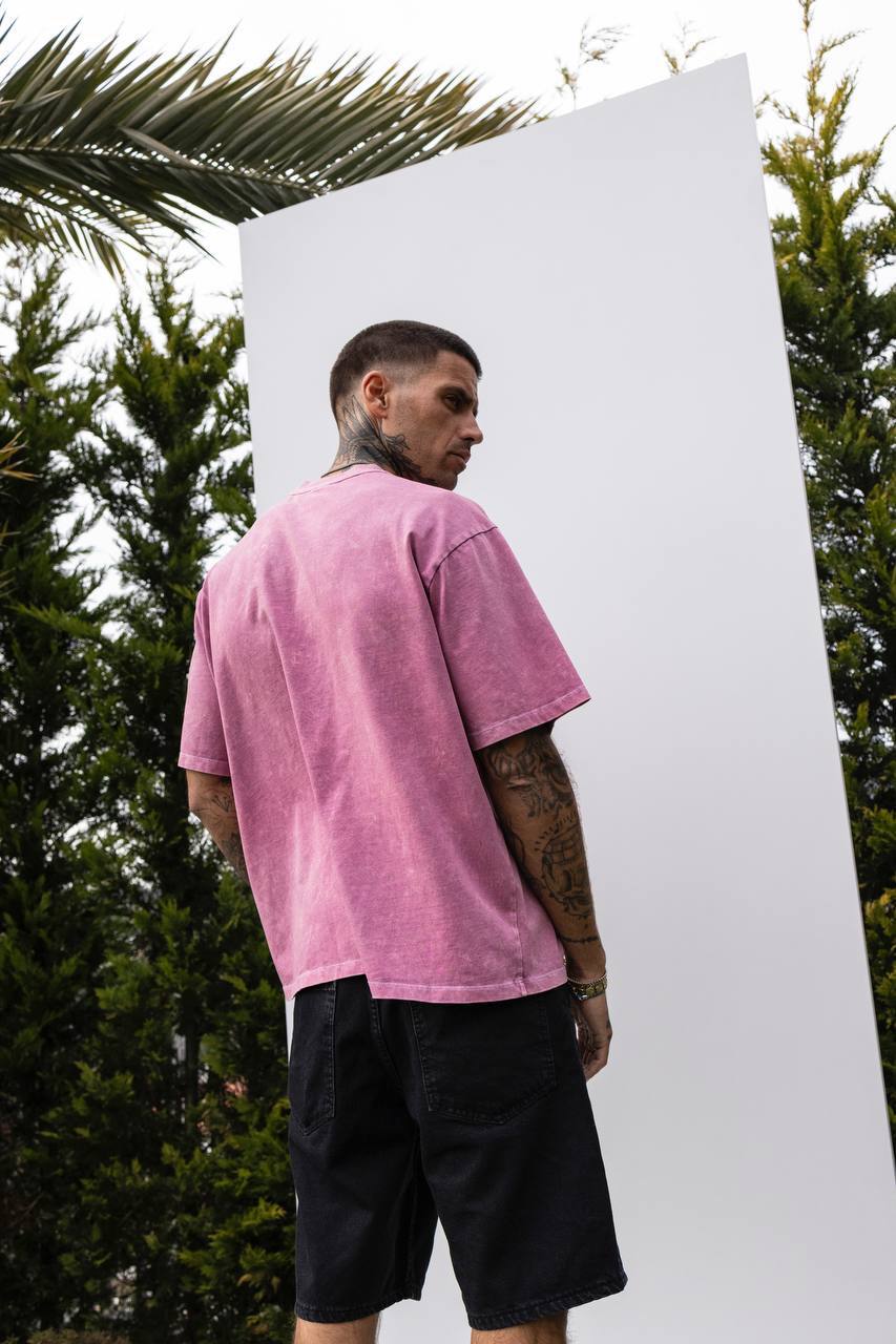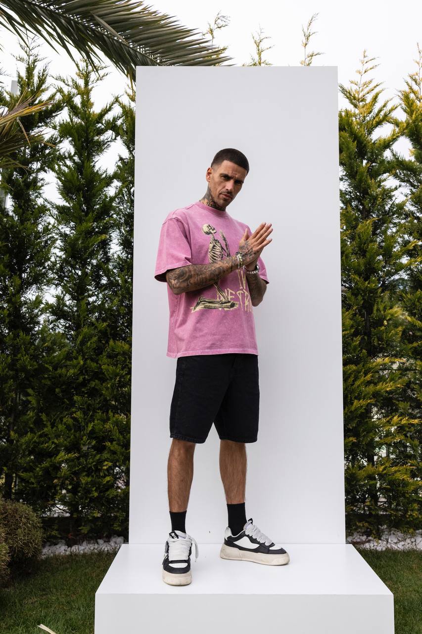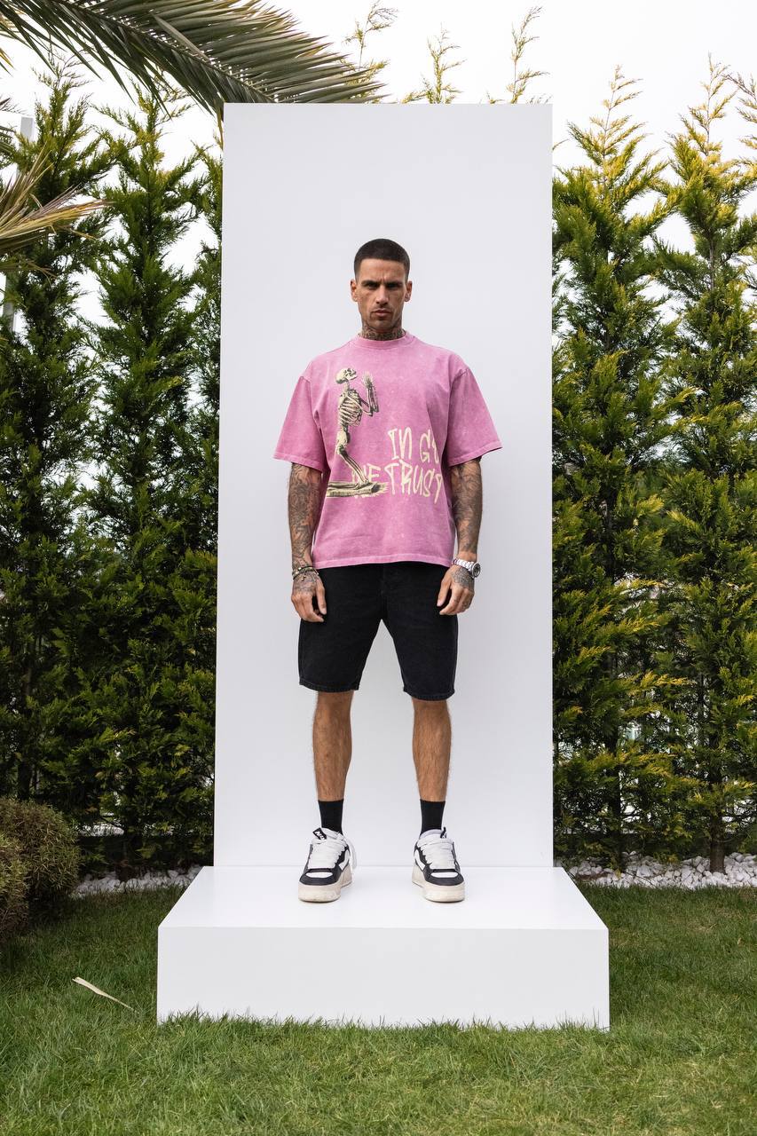 Чоловіча Бавовняна Рожева Футболка Варена Оверсайз з Принтом Скелет