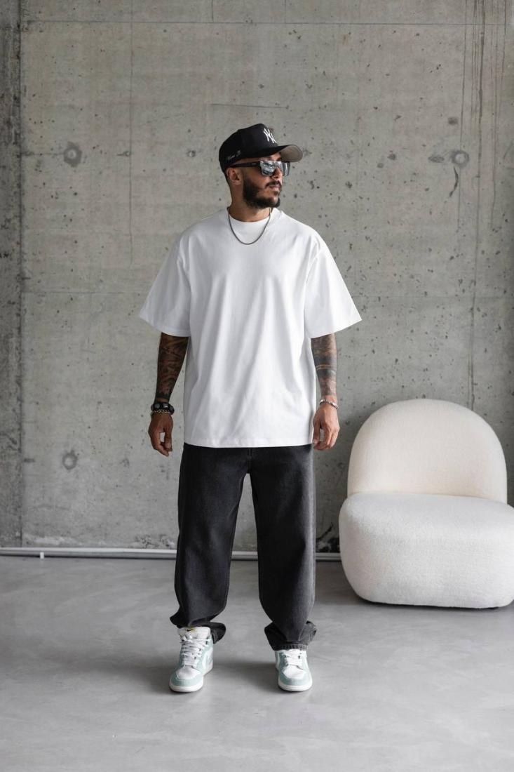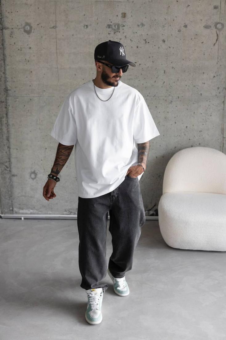 Чоловіча Базова Біла Футболка Кулір – Об’ємна Оверсайз
