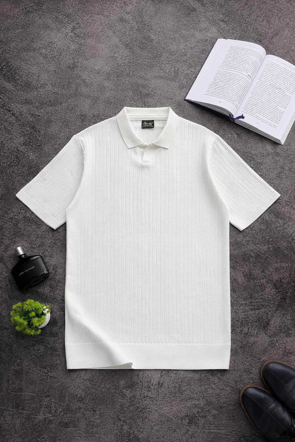 Чоловіча Базова Біла Футболка в Рубчик – Класична з Коміром Поло