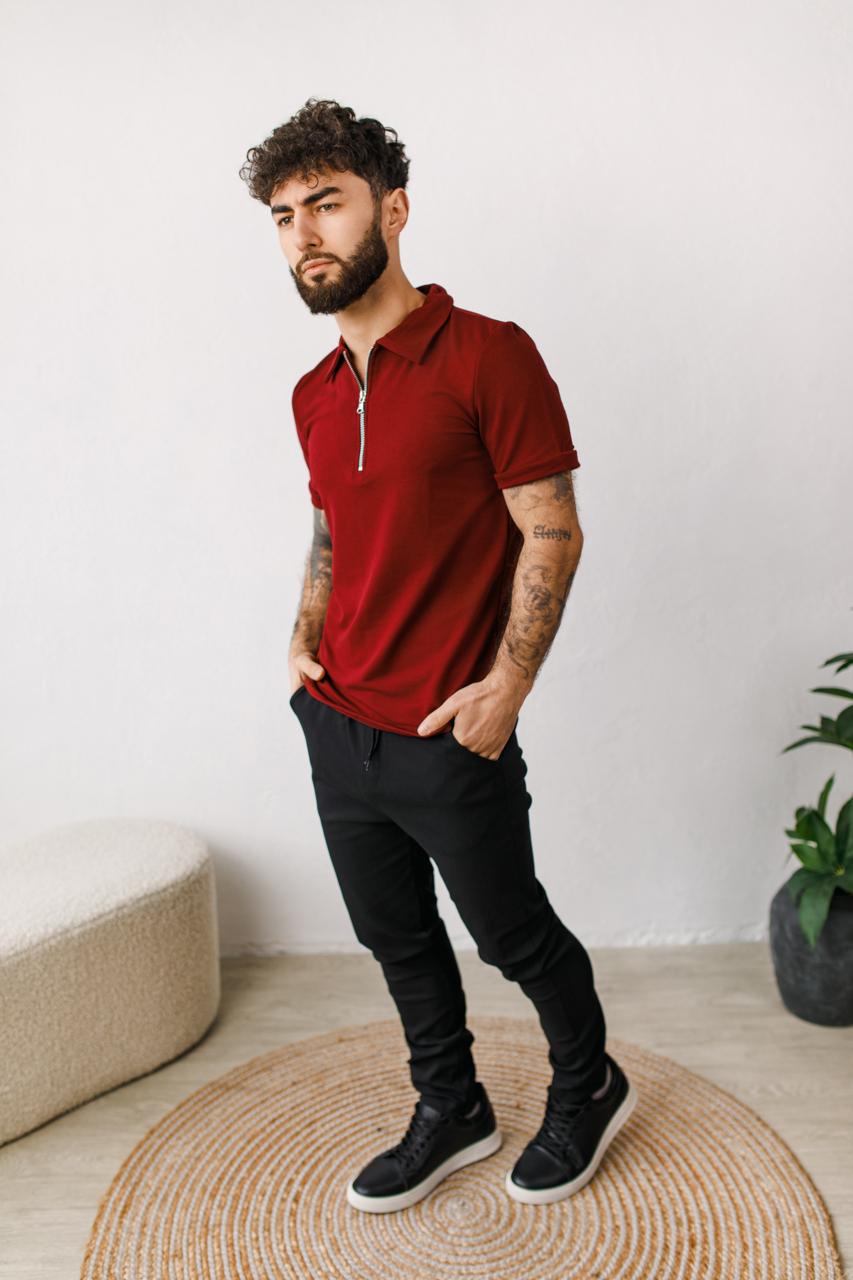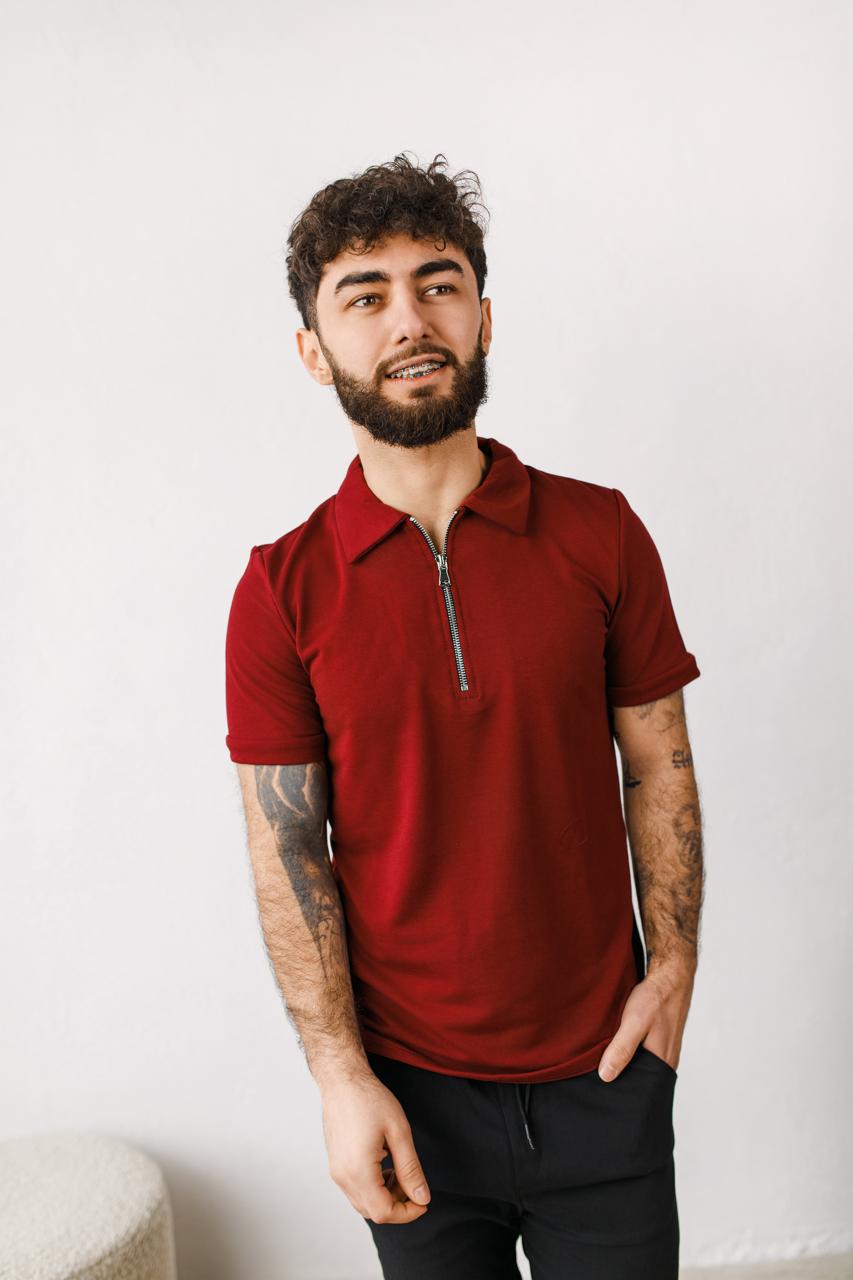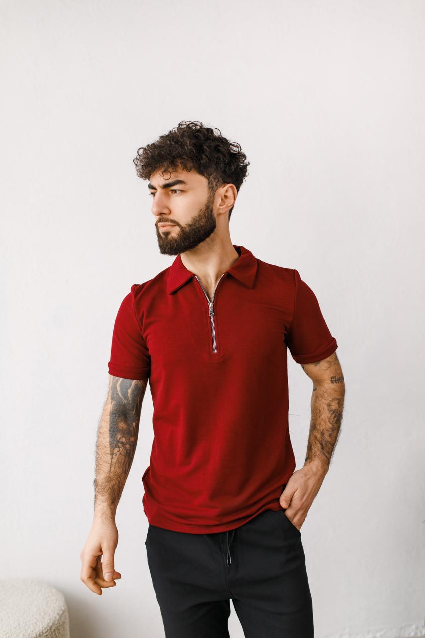 Чоловіча Базова Бордова Футболка Поло – Класична Теніска зі Змійкою