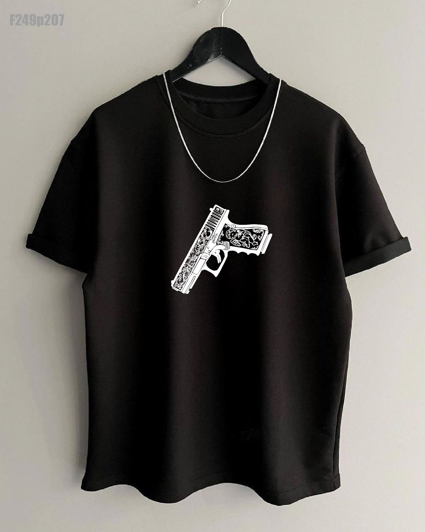 Чоловіча Базова Чорна Футболка Бавовна – Вільного Крою з Принтом Пістолет