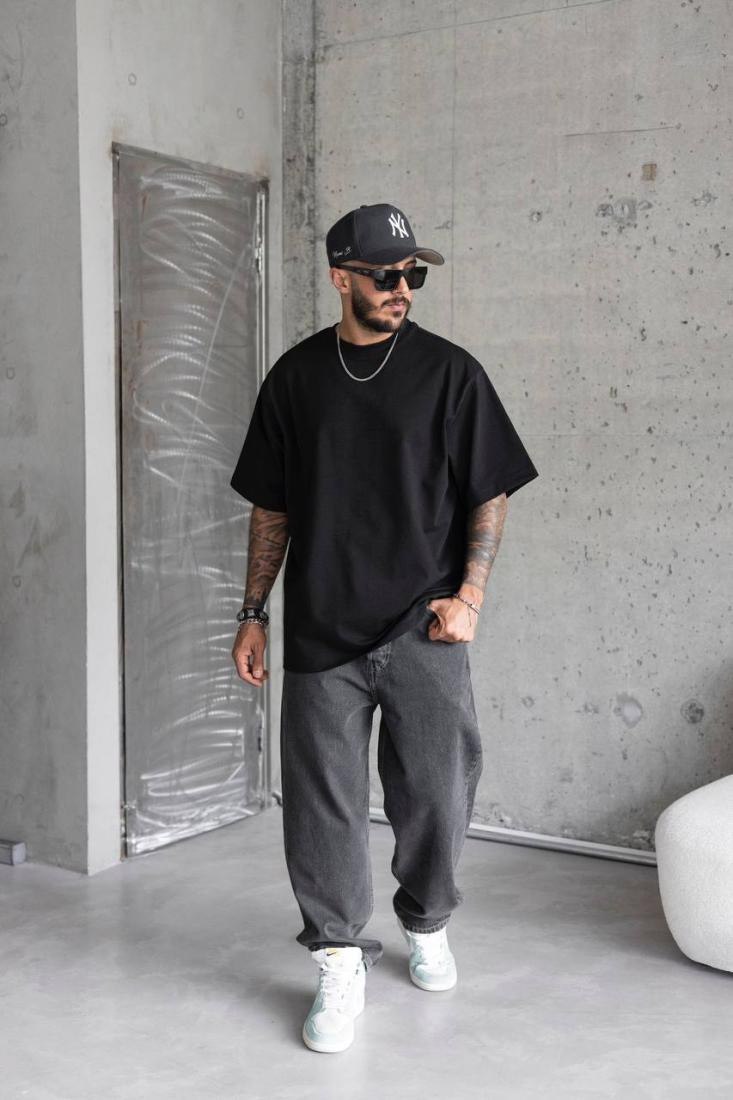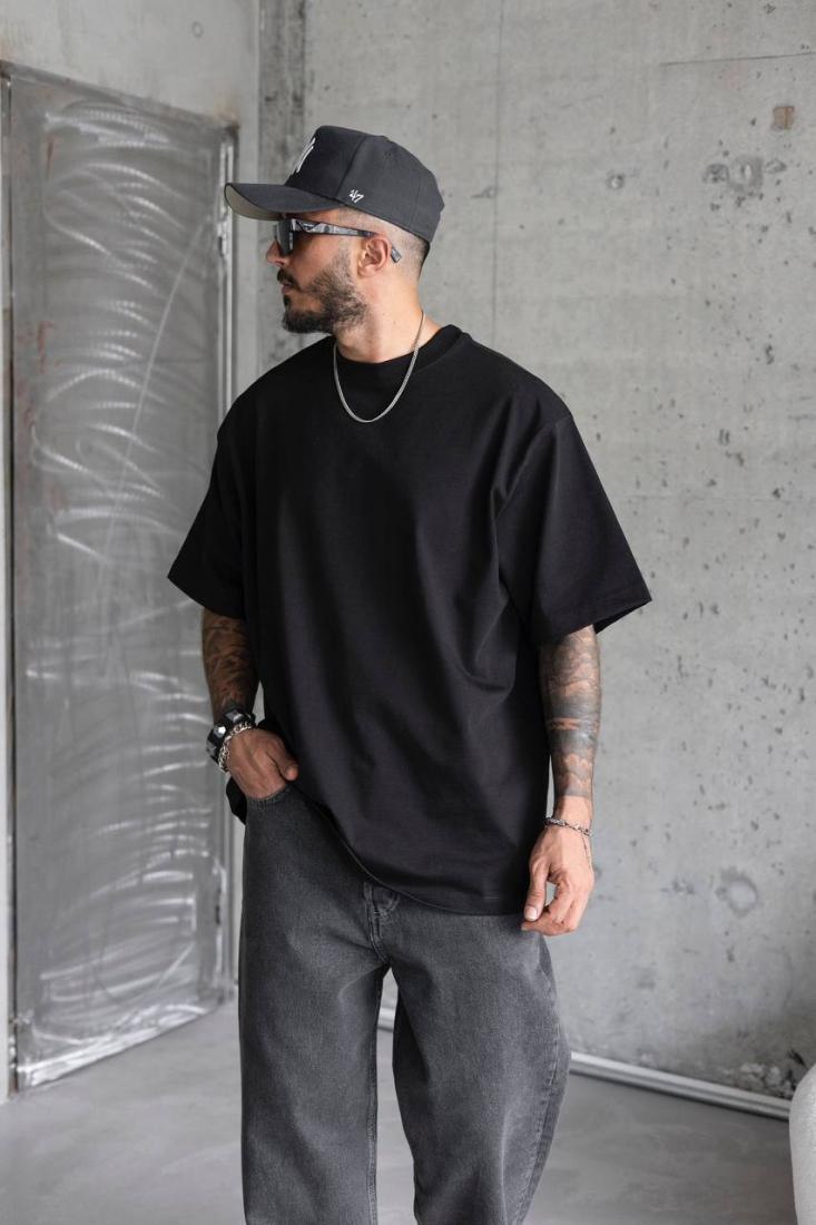 Чоловіча Базова Чорна Футболка Кулір – Об’ємна Оверсайз