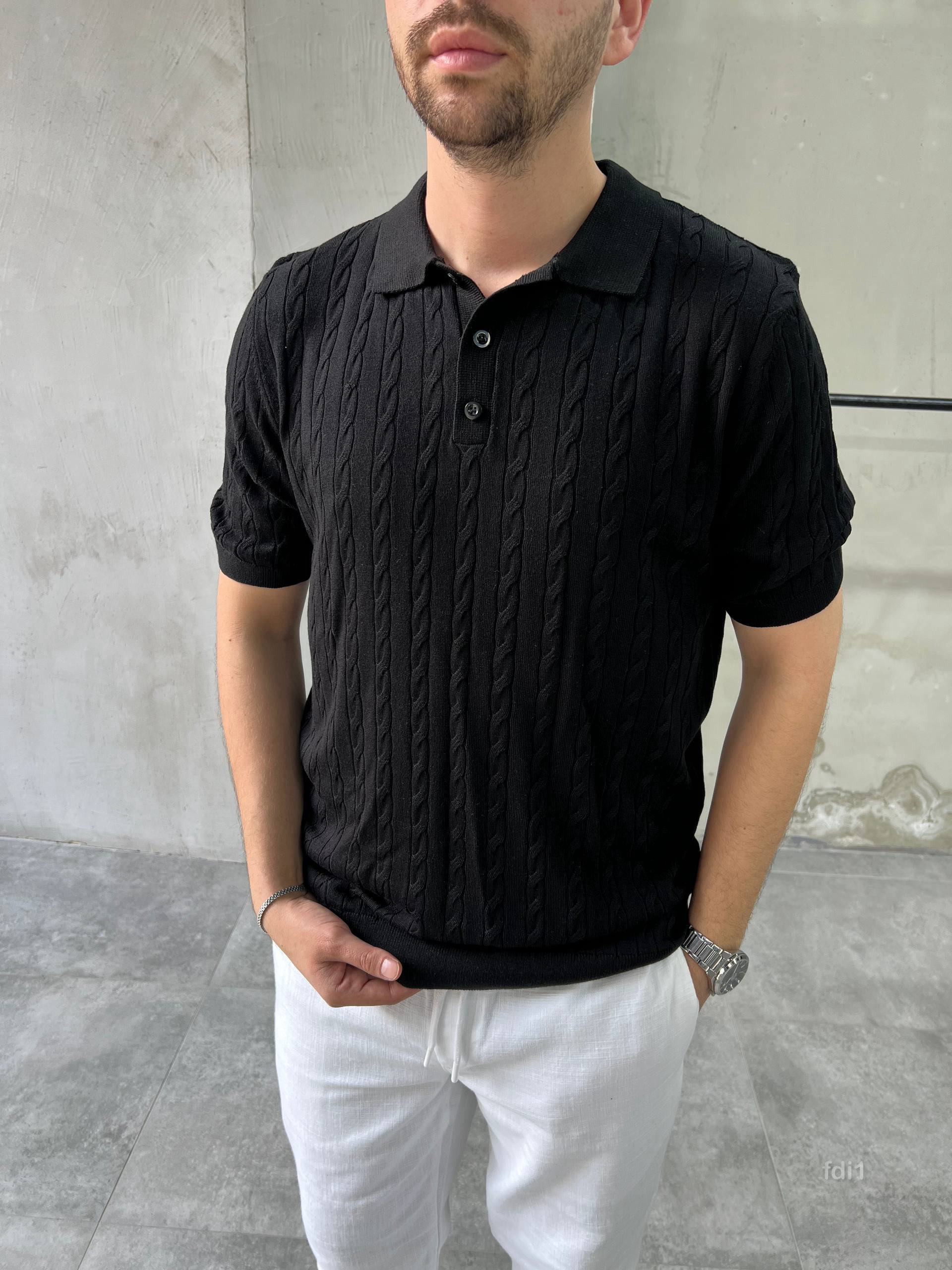 Чоловіча Базова Чорна Футболка Поло з Візерунком Косичка