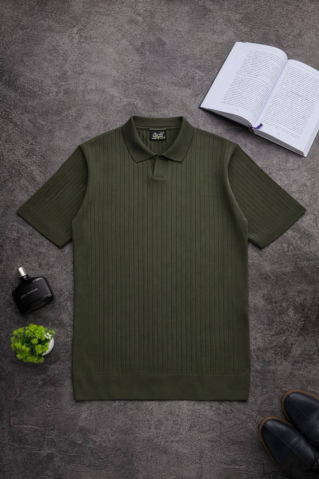 Чоловіча Базова Хакі Футболка в Рубчик – Класична з Коміром Поло