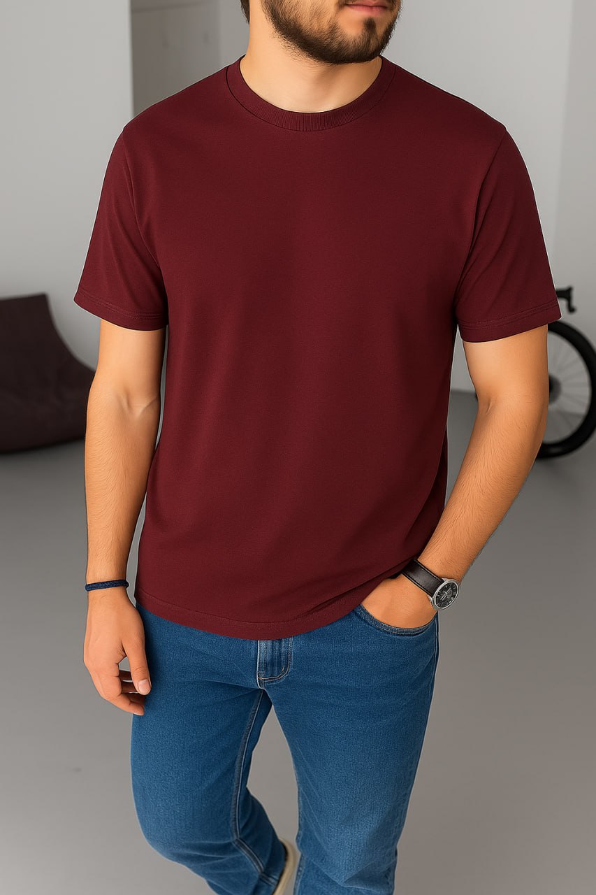 Чоловіча Базова Літня Бордова Футболка з Круглим Вирізом
