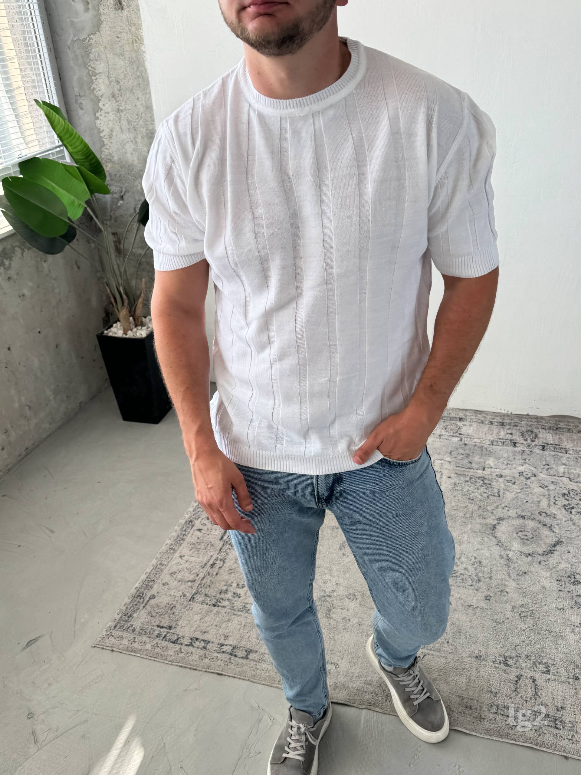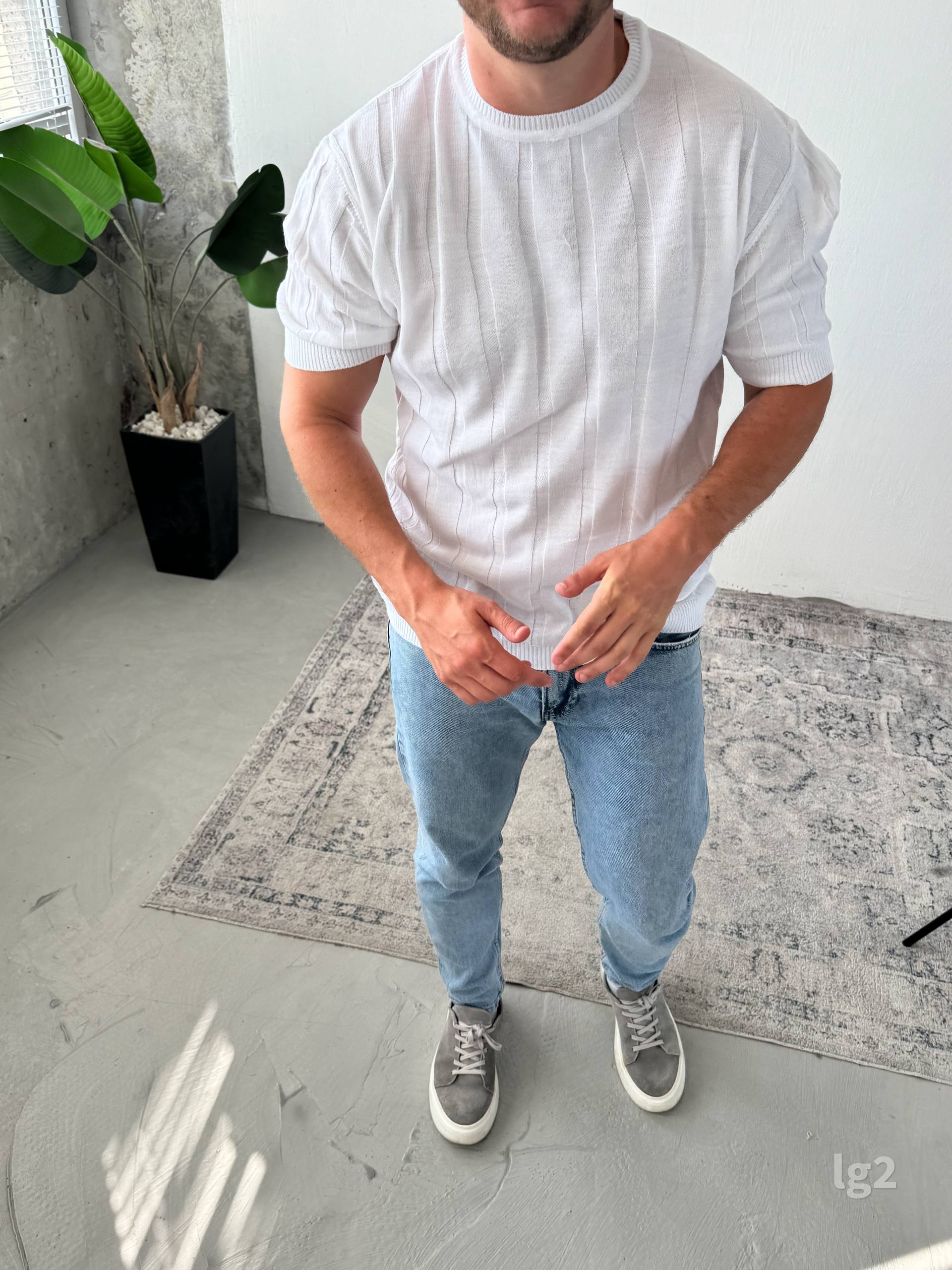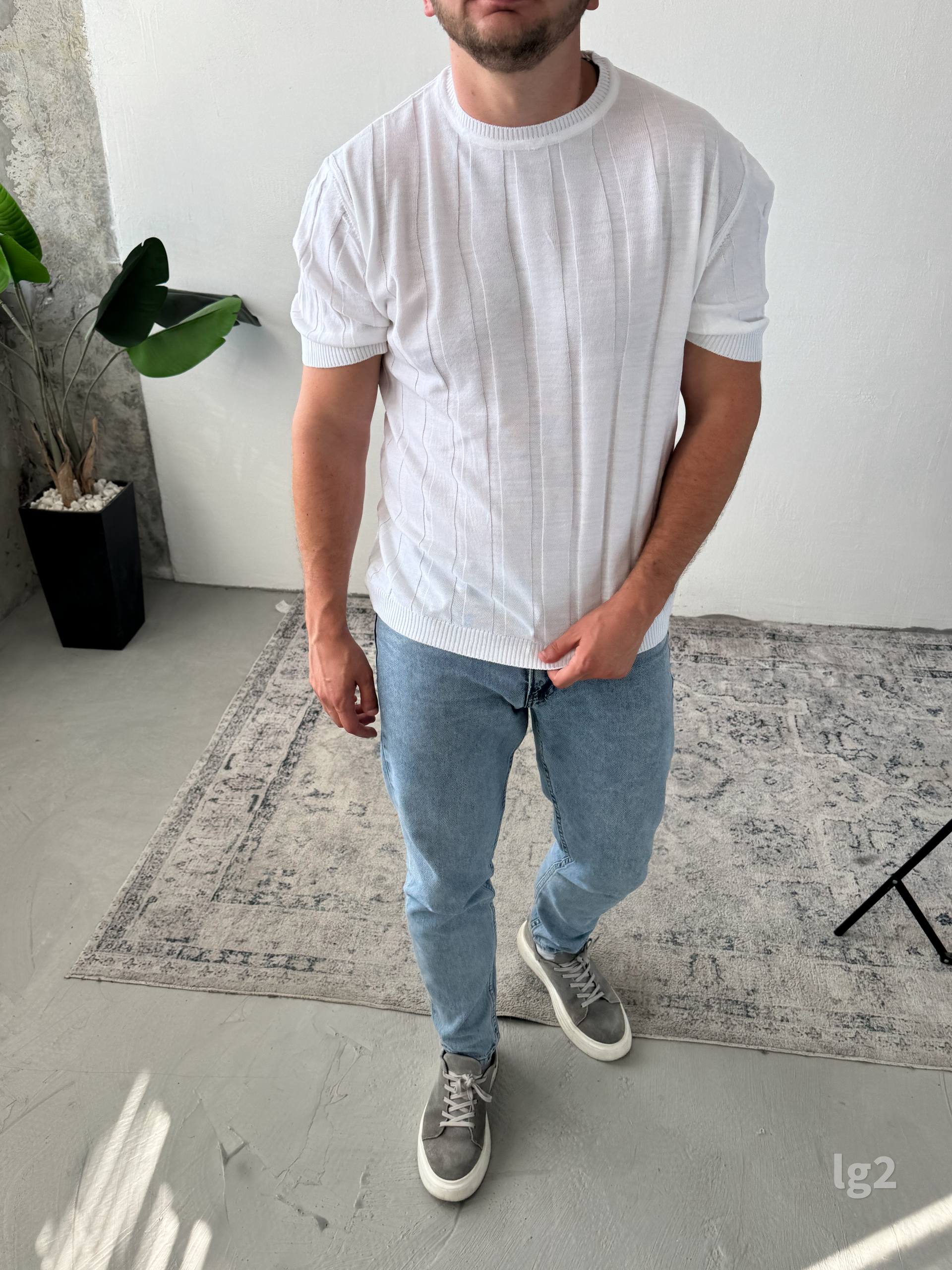 Чоловіча Базова Трикотажна Біла Футболка з Круглим Вирізом Горловини