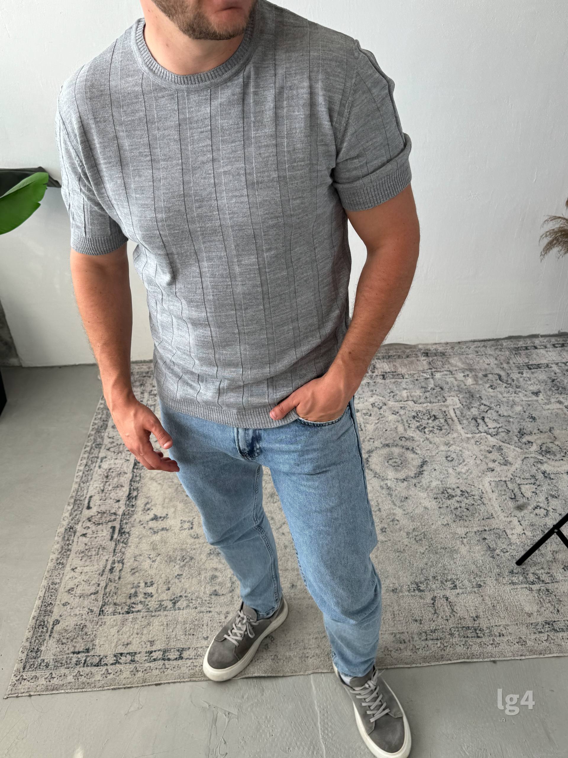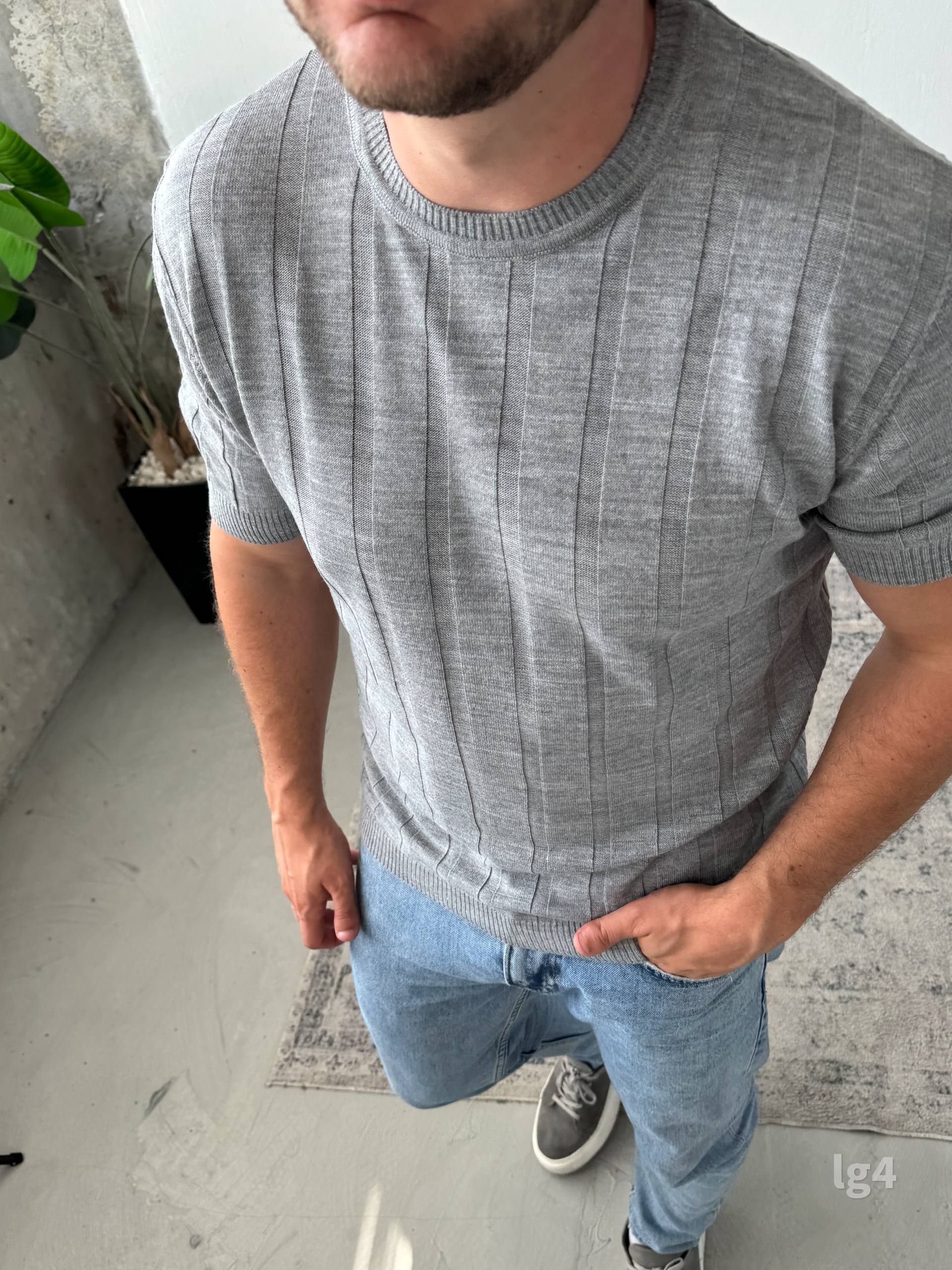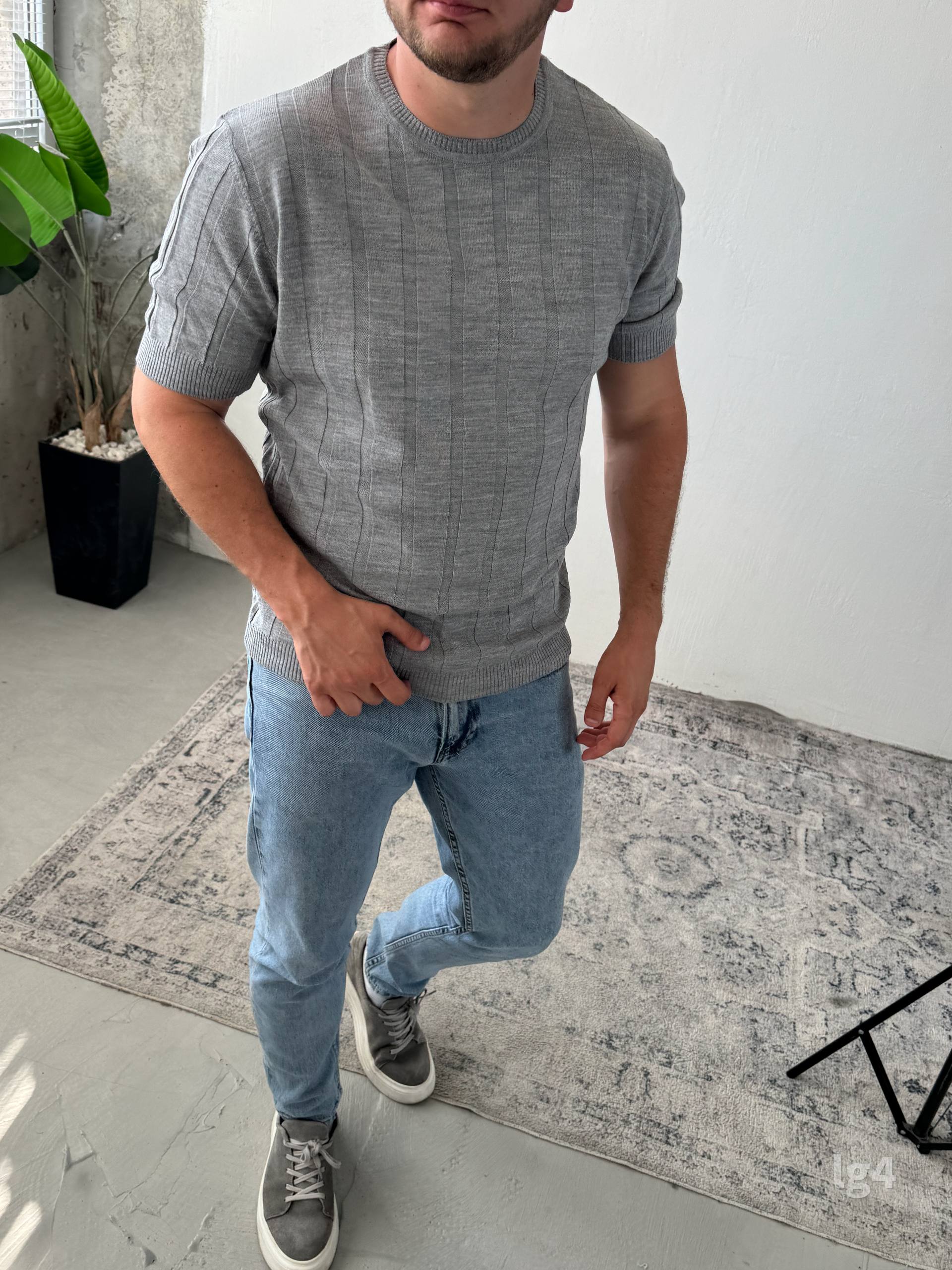 Чоловіча Базова Трикотажна Сіра Футболка з Круглим Вирізом Горловини
