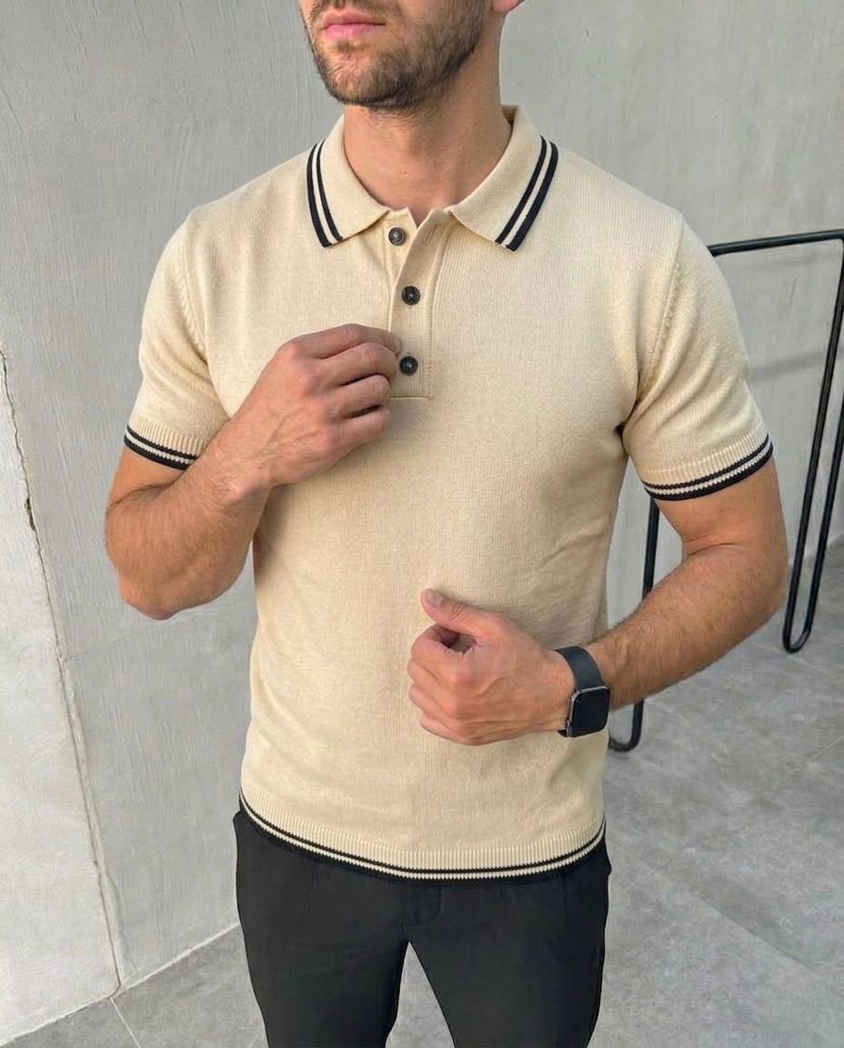 Чоловіча Бежева Футболка – Класична з Коміром Поло та Окантовкою