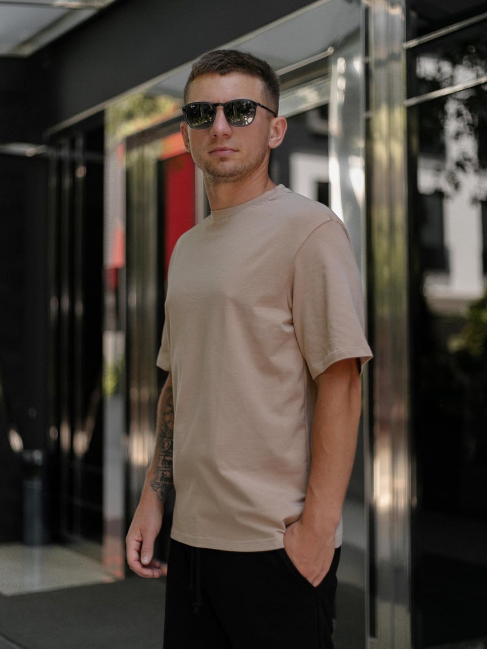 Головна Каталог Чоловіче Футболки Чоловіча Бежева Футболка Оверсайз База