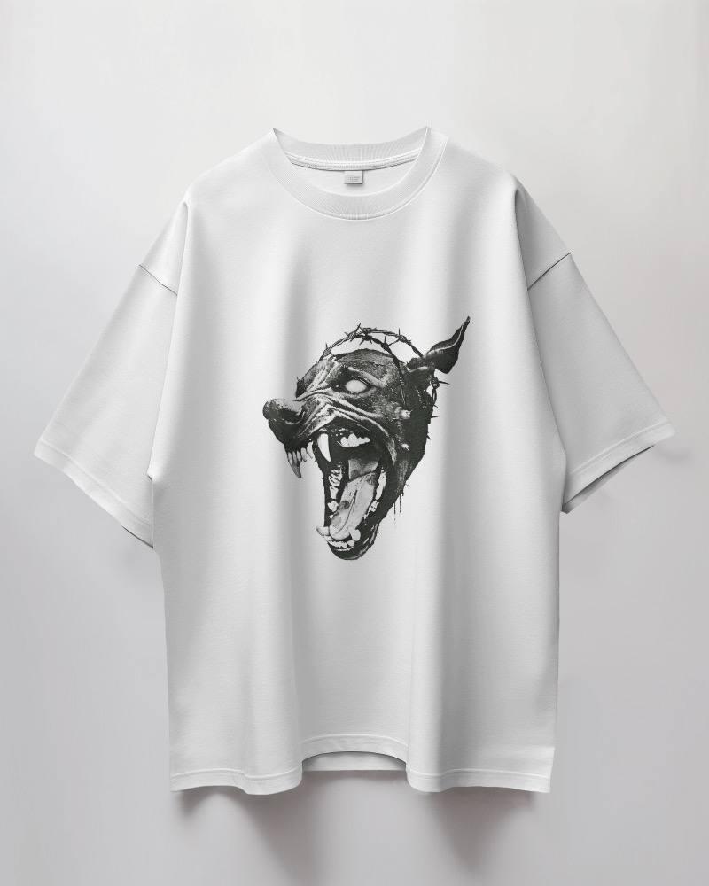 Чоловіча Біла Футболка Бавовна Оверсайз з Доберманом