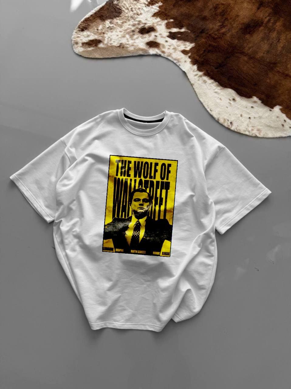 Чоловіча Біла Футболка Бавовна Оверсайз з Принтом “Вовк з Уолл-стріт”