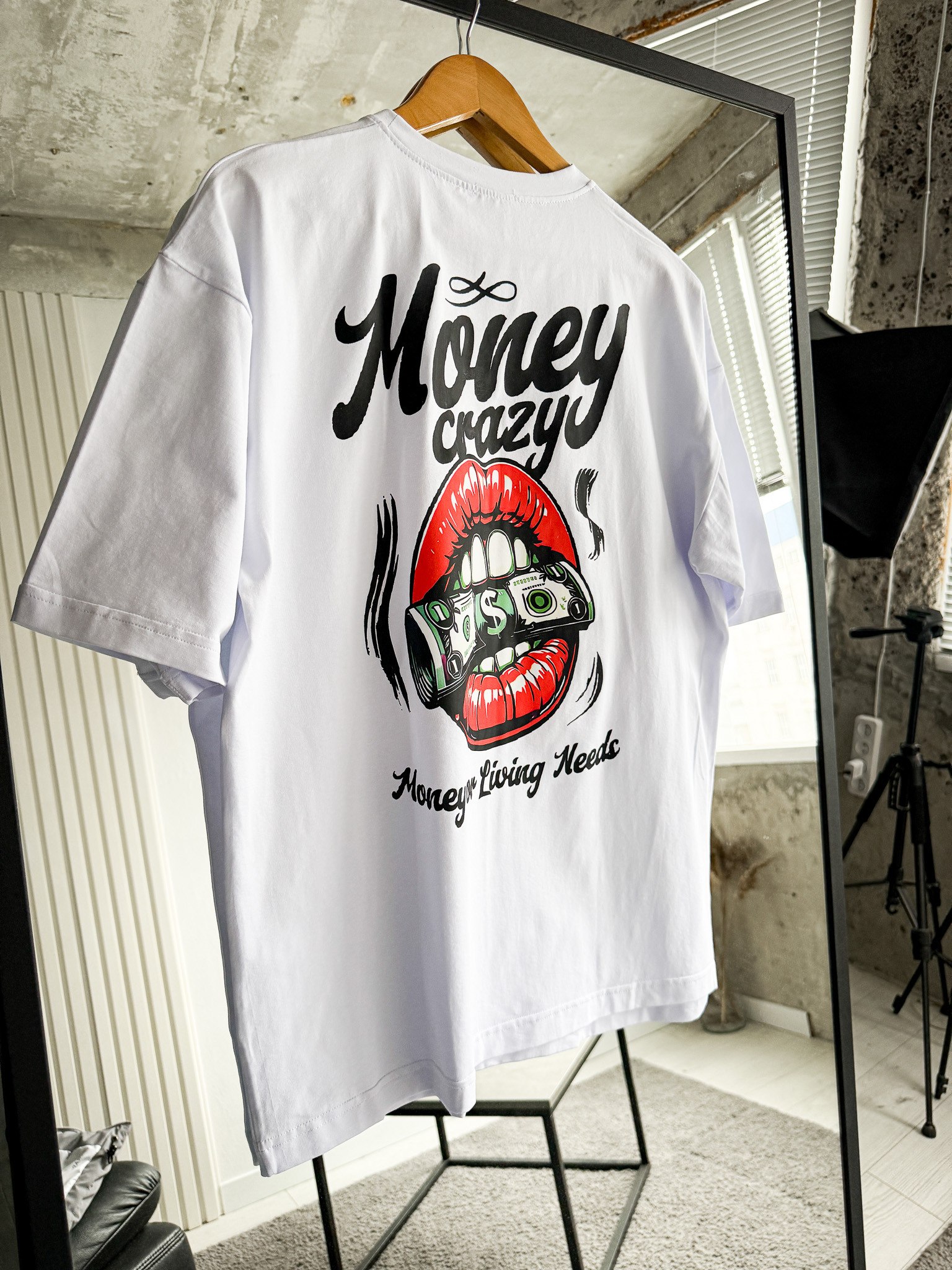 Чоловіча Біла Футболка Оверсайз Бавовна з Принтом Губи на Спині