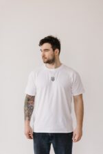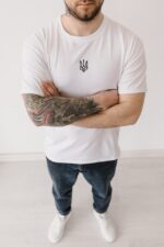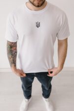 Чоловіча Біла Футболка Оверсайз – Базова Бавовняна з Вишитим Тризубом
