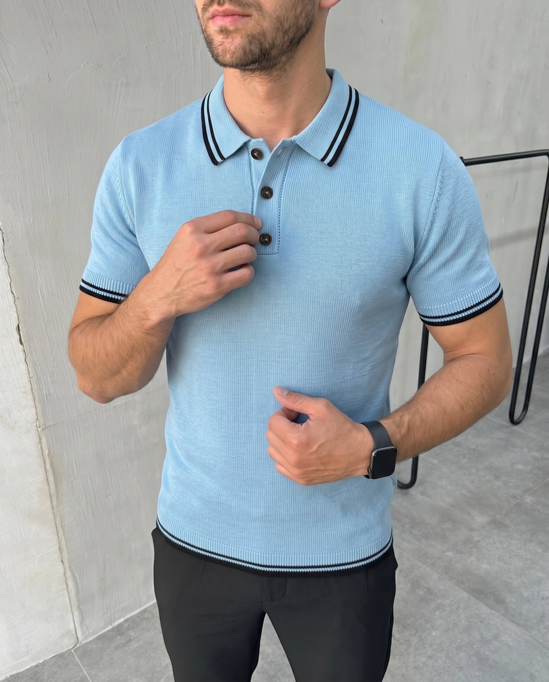 Чоловіча Блакитна Футболка – Класична з Коміром Поло та Окантовкою