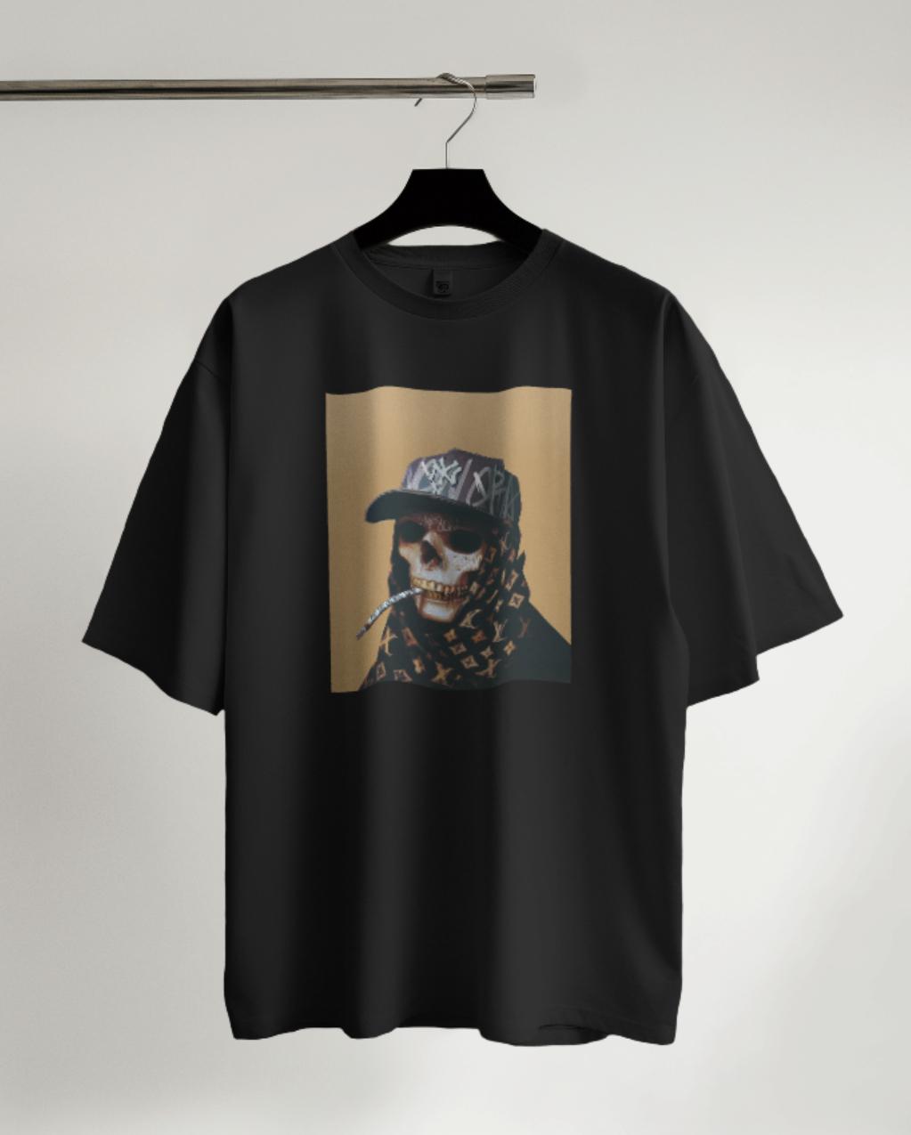 Чоловіча Чорна Футболка Бавовна Оверсайз з Черепом