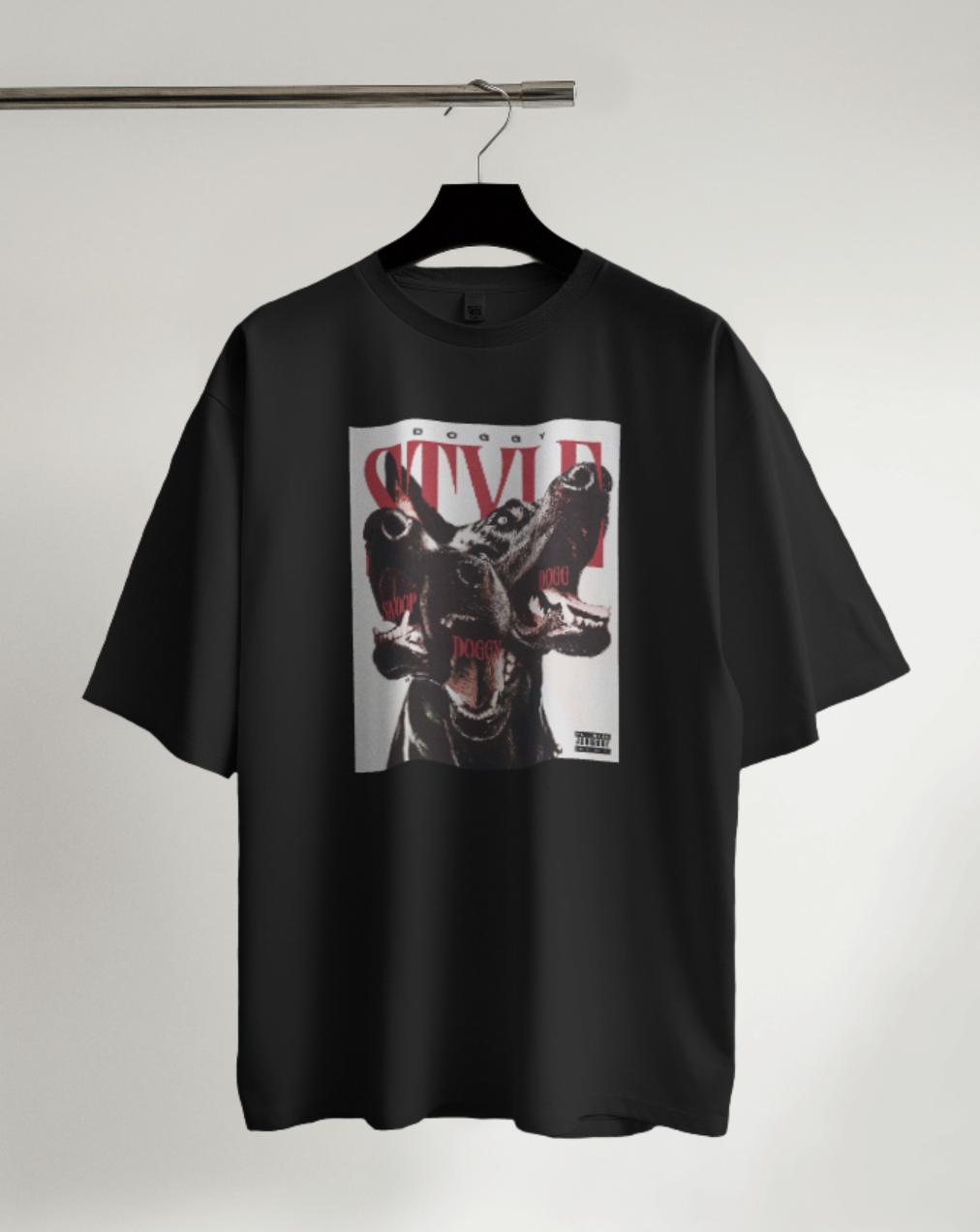 Чоловіча Чорна Футболка Бавовна Оверсайз з Доберманом