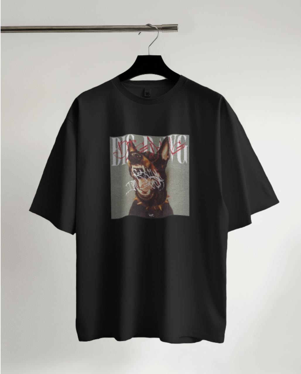 Чоловіча Чорна Футболка Бавовна Оверсайз з Принтом Доберман