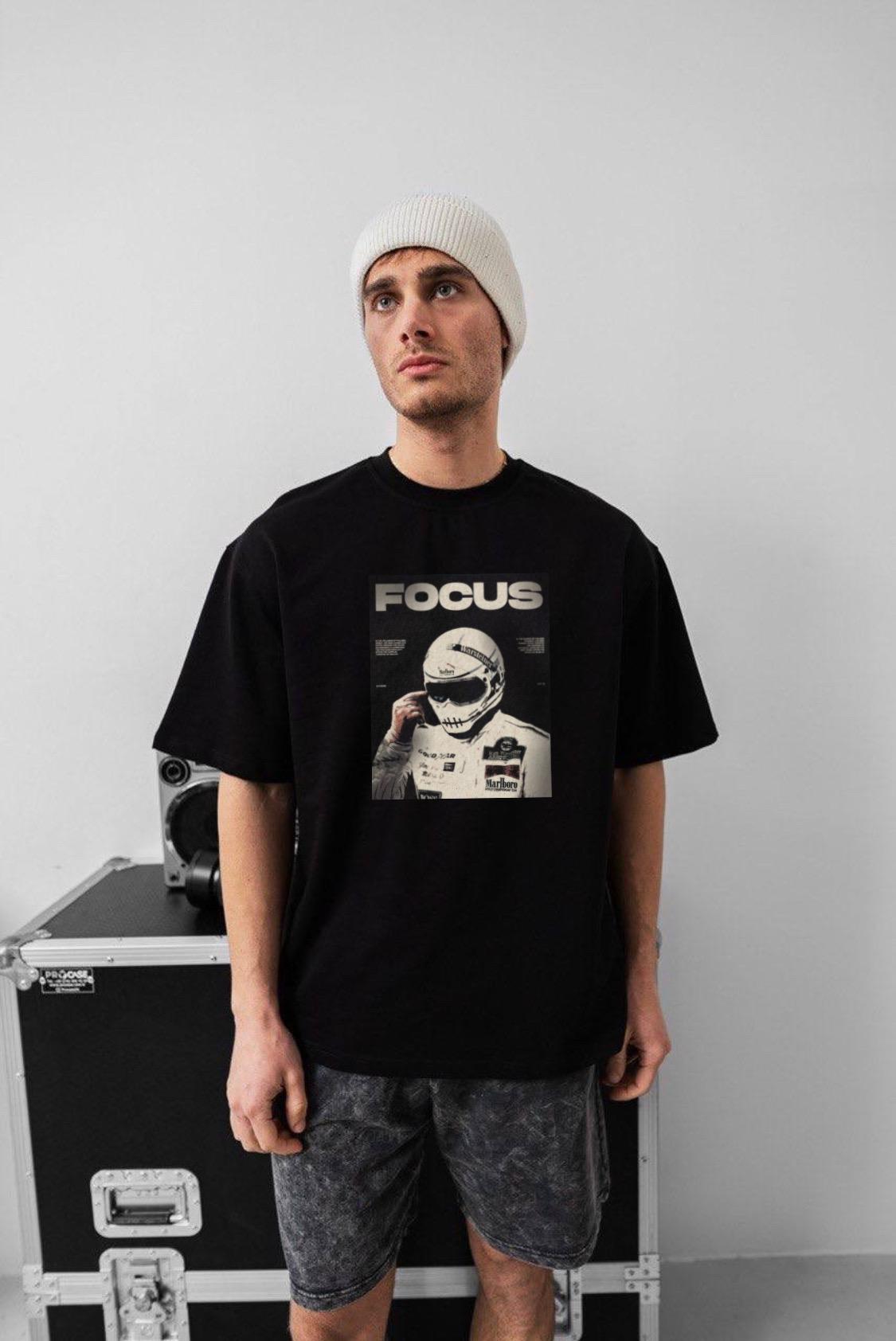 Чоловіча Чорна Футболка Бавовна Оверсайз з Принтом “Focus”