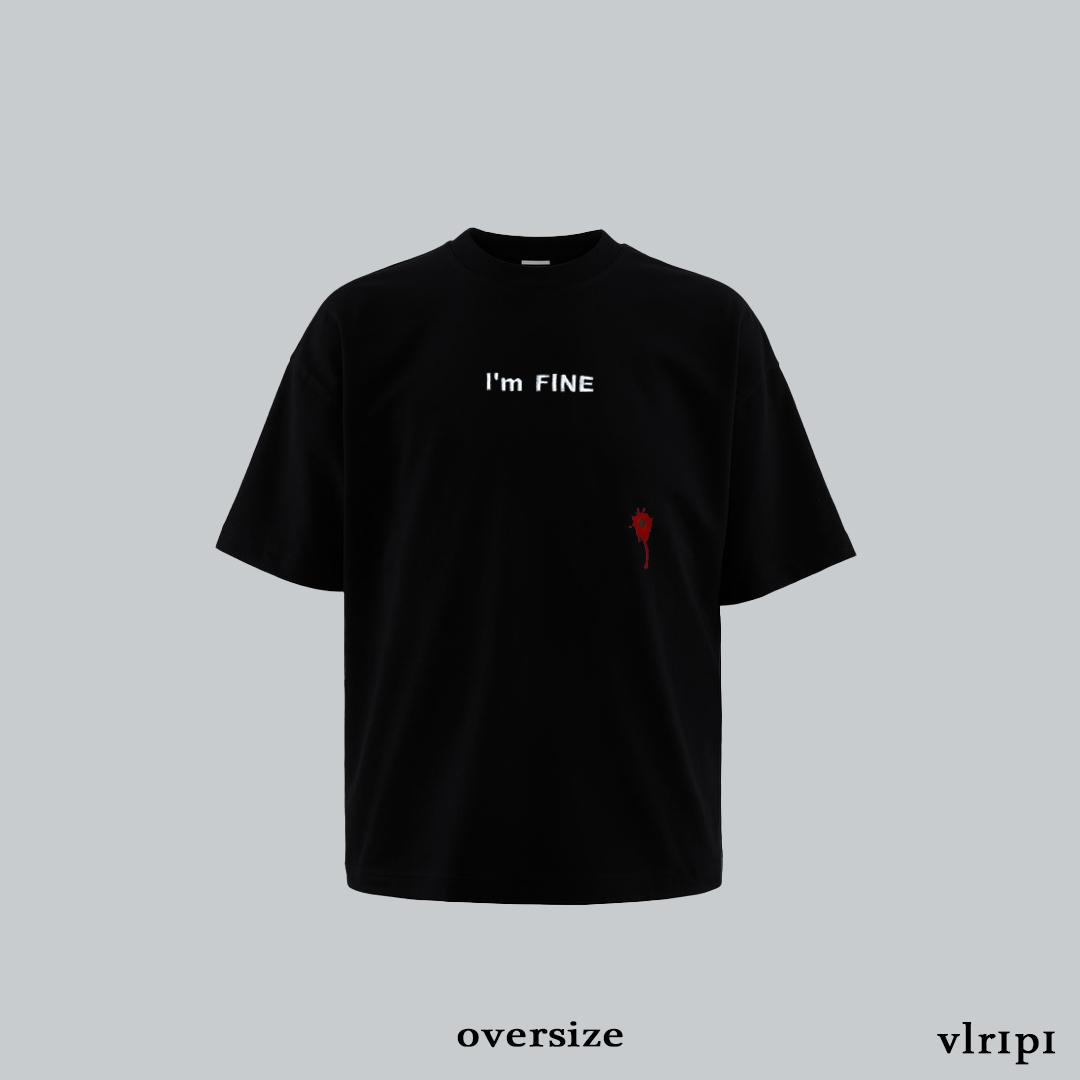 Чоловіча Чорна Футболка Оверсайз Кулір з Написом “I’m Fine”